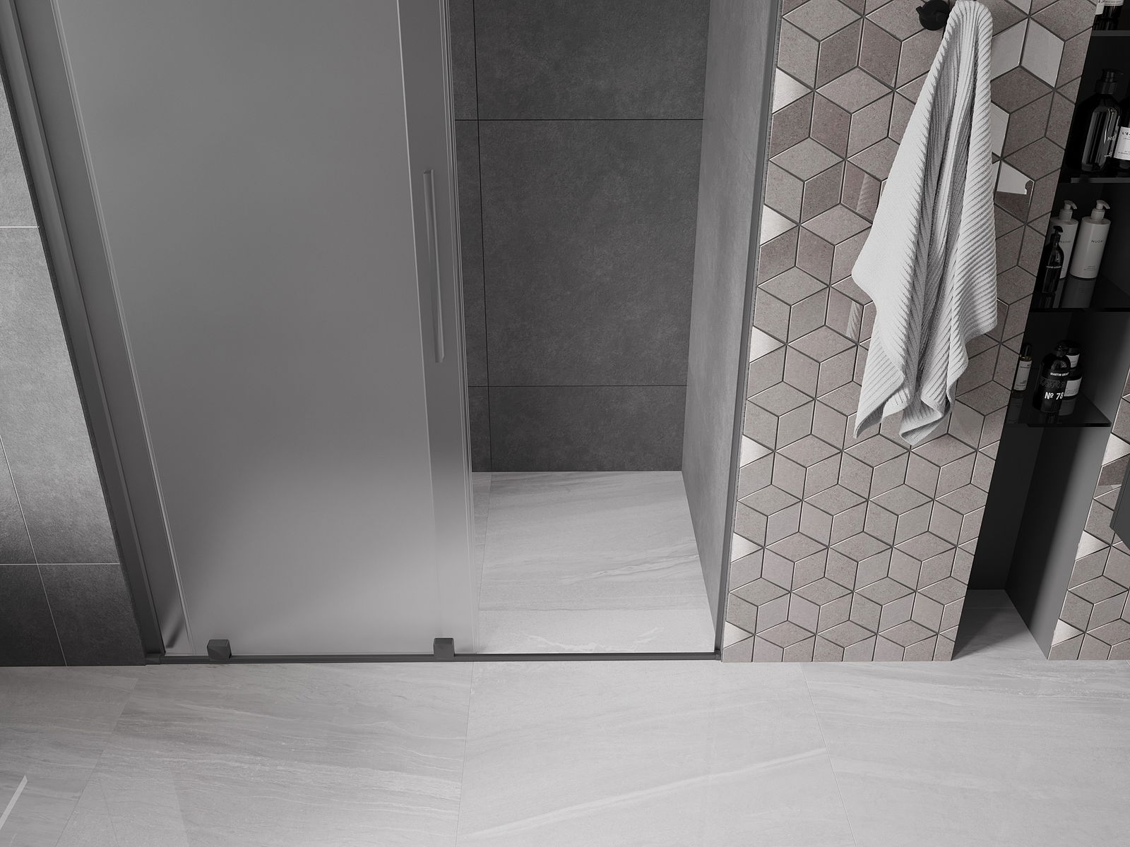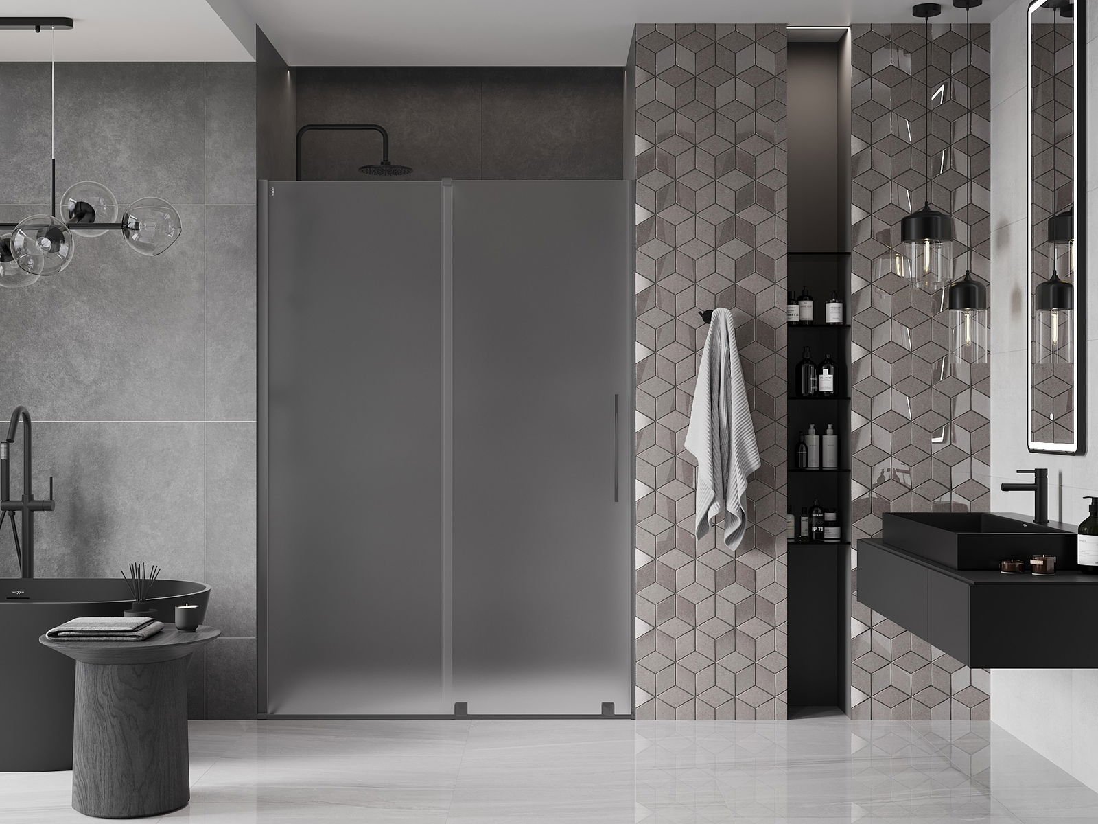Ērts un parocīgs rokturis ir izgatavots no nerūsējoša tērauda. Modernā forma apvienojumā ar apdari, kas saskaņota ar profilu krāsu, piešķir kopējo modernu un stilīgu izskatu, izceļot katras vannas istabas estētiku.