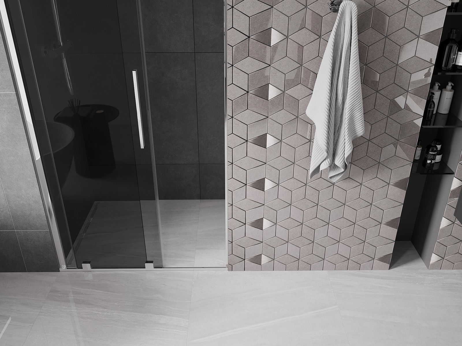 Ērts un parocīgs rokturis ir izgatavots no nerūsējoša tērauda. Modernā forma apvienojumā ar apdari, kas saskaņota ar profilu krāsu, piešķir kopējo modernu un stilīgu izskatu, izceļot katras vannas istabas estētiku.
