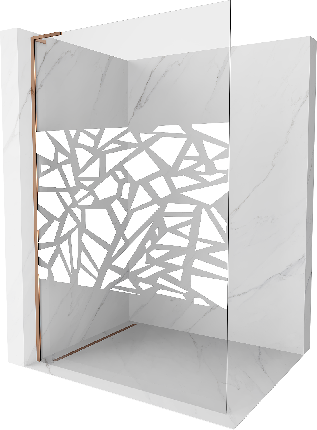Mexen Kioto L dušas siena Walk-in 80 x 200 cm, balts raksts, rozā zelts - 800-080-103-60-85