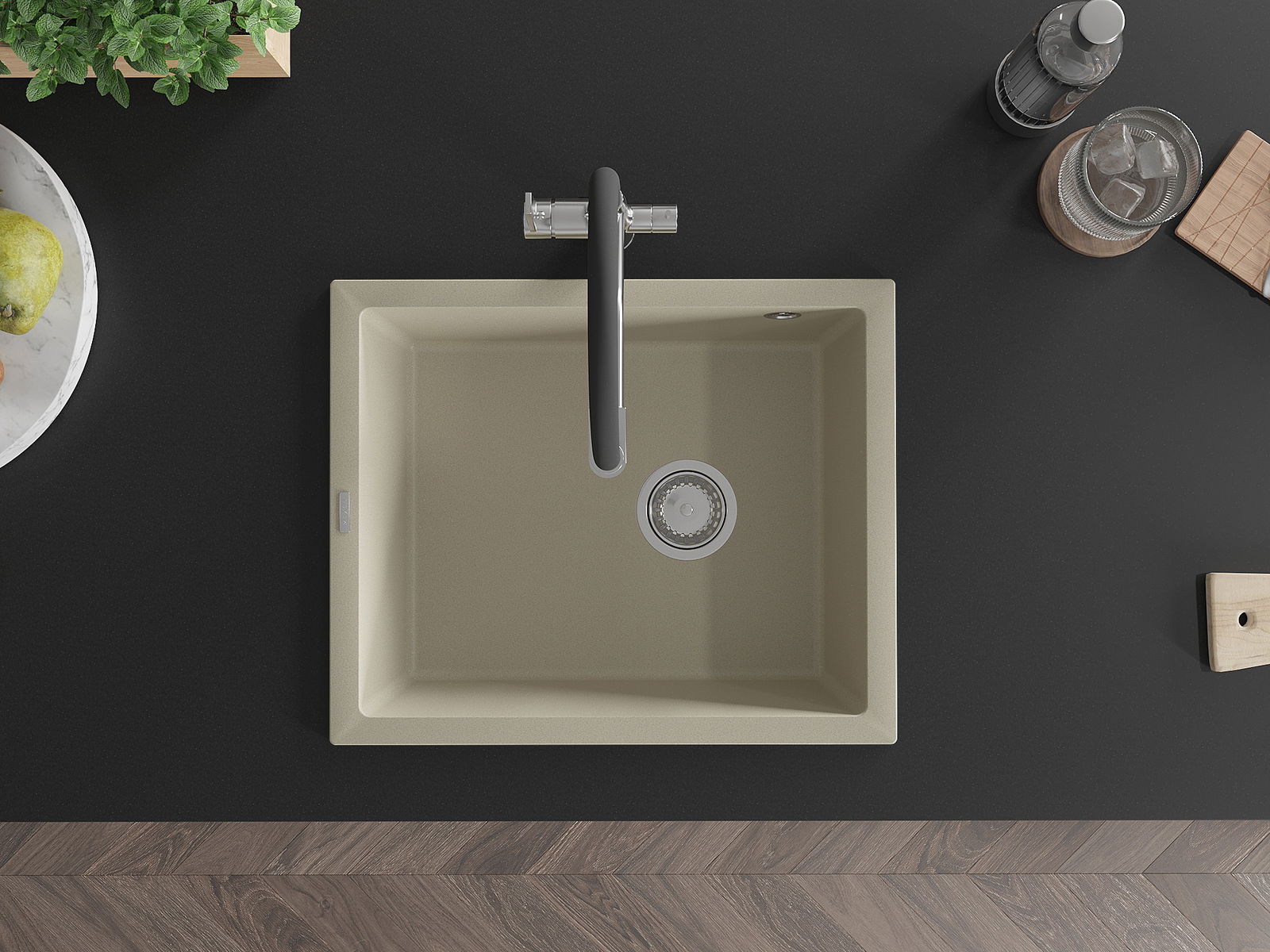 Mexen Pedro granīta izlietne ar 1 nodalījumu 560 x 460 mm, bēša, sifons hroms - 6508561000-69