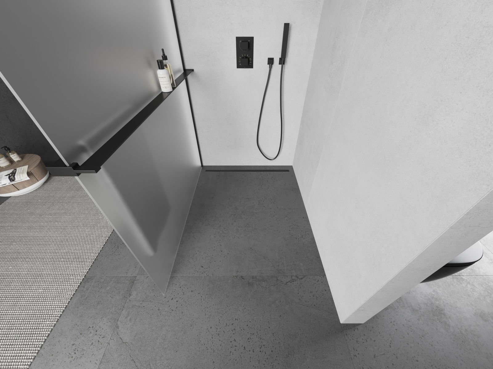 Mexen Kioto+ L duša sienas ar plauktu Walk-in 70 x 200 cm, matēts, melns - 800-070-123-70-30