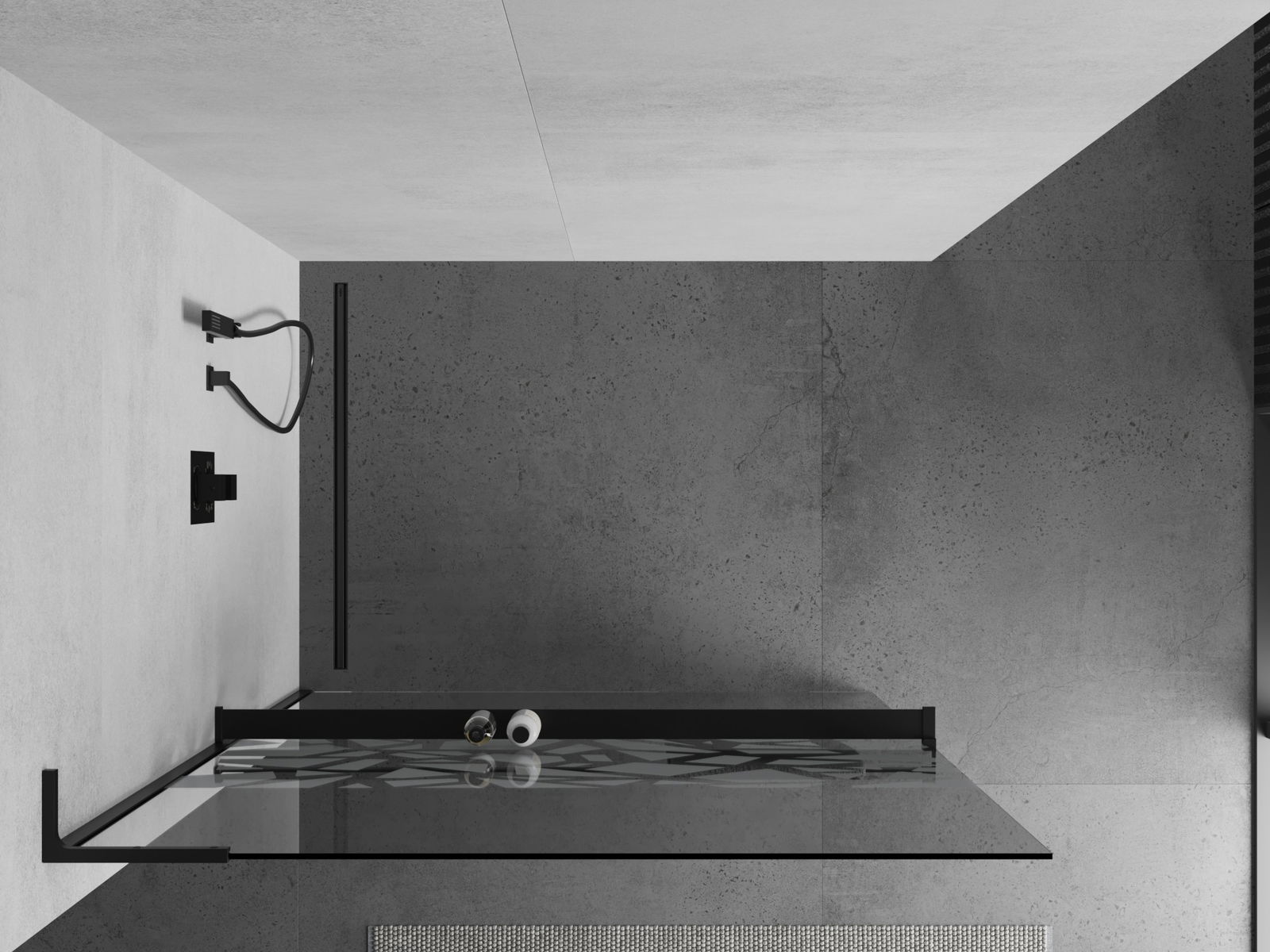 Mexen Kioto+ L dušas siena ar plauktu Walk-in 120 x 200 cm, balts raksts, melns - 800-120-123-70-85
