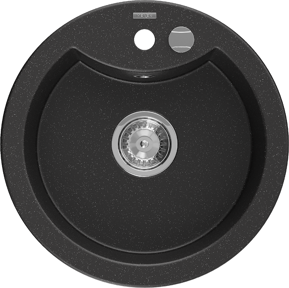 Mexen Diego granitā izlietne ar vienu nodalījumu 488 x 480 mm, melna/sudraba metālika, hromēts sifons - 6512481000-73
