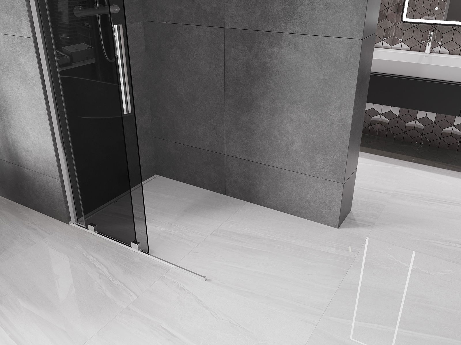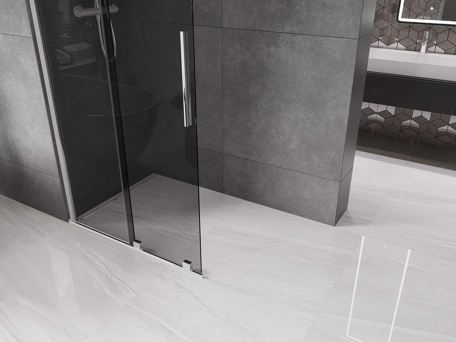 Mexen Velar bīdāma dušas siena Walk-in 90 x 200 cm, grafīts 8 mm, hroms - 871-090-000-43-01