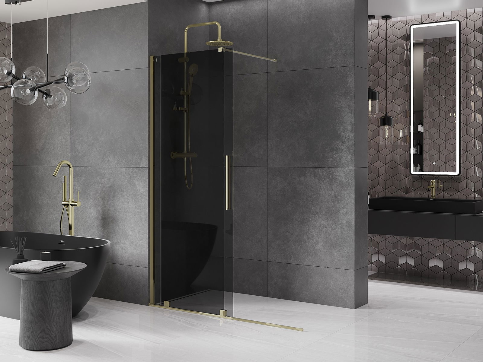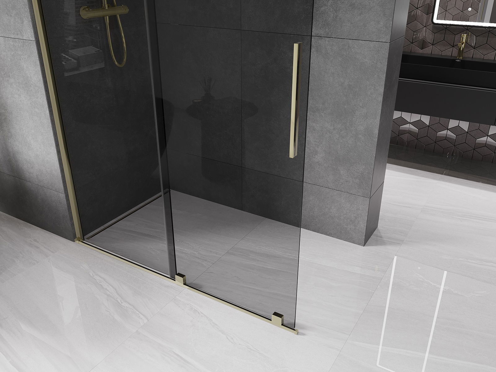 Mexen Velar bīdāma dušas siena Walk-in 130 x 200 cm, grafīts 8 mm, zelta - 871-130-000-43-50