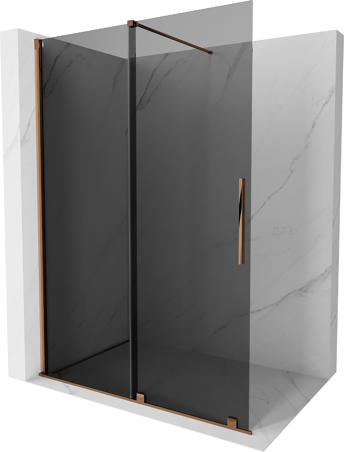 Mexen Velar bīdāmās dušas siena Walk-in 130 x 200 cm, grafīts 8 mm, rozā zelts - 871-130-000-43-60