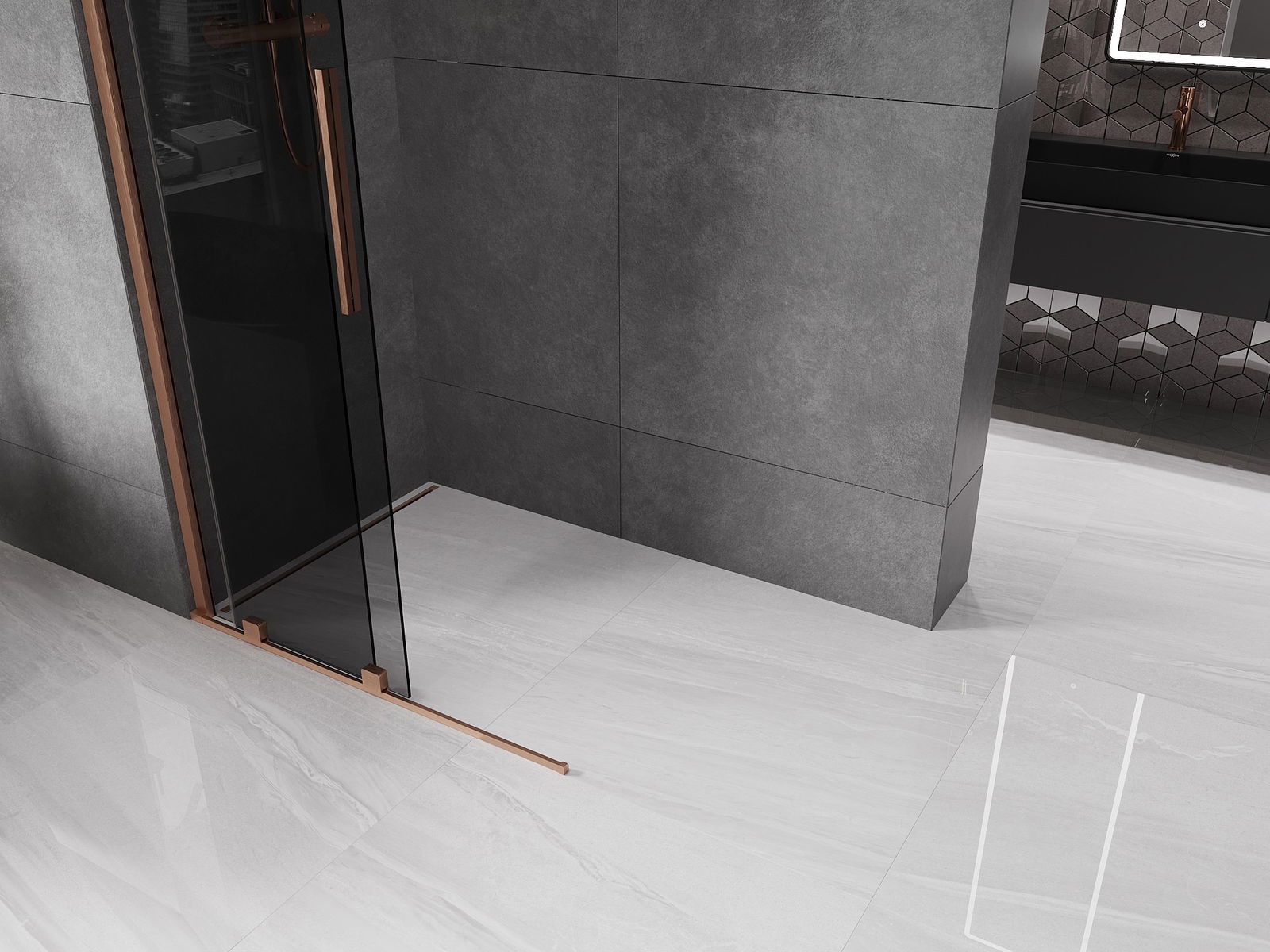 Mexen Velar bīdāma dušas siena Walk-in 110 x 200 cm, grafīts 8 mm, matēts varš - 871-110-000-43-65