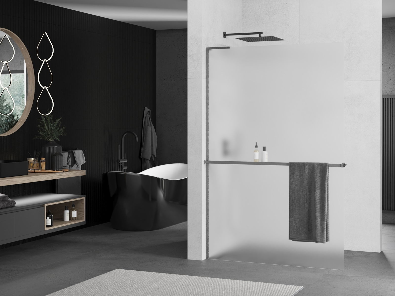 Mexen Kioto+ L duša siena ar plauktu Walk-in 80 x 200 cm, matēts, gun metal krāsā - 800-080-123-95-30
