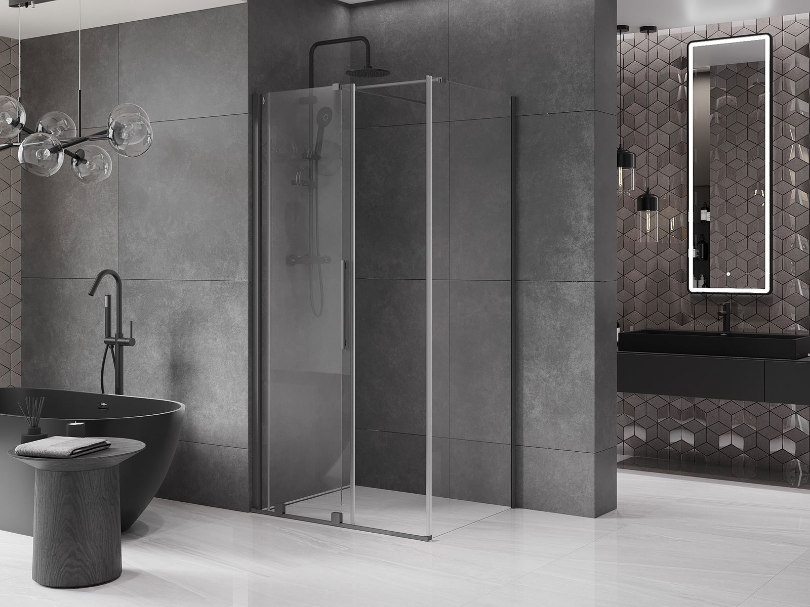 Ērts un parocīgs rokturis ir izgatavots no nerūsējoša tērauda. Modernā forma apvienojumā ar apdari, kas saskaņota ar profilu krāsu, piešķir kopējo modernu un stilīgu izskatu, izceļot katras vannas istabas estētiku.
