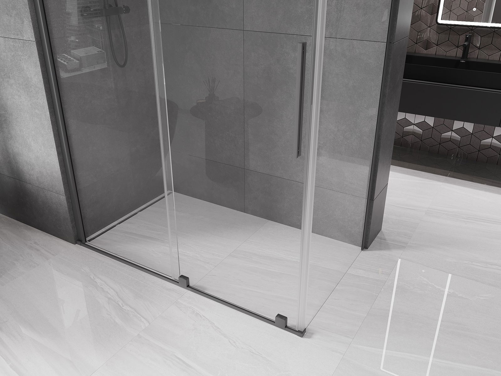 Mexen Velar bīdāmo dušas kabīne 150 x 85 cm, caurspīdīga, gun metal - 871-150-085-01-95