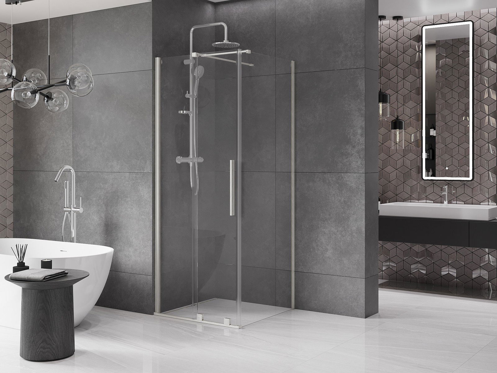 Mexen Velar bīdāmā duškabīne 100 x 100 cm, caurspīdīga, matēts niķelis - 871-100-100-01-97