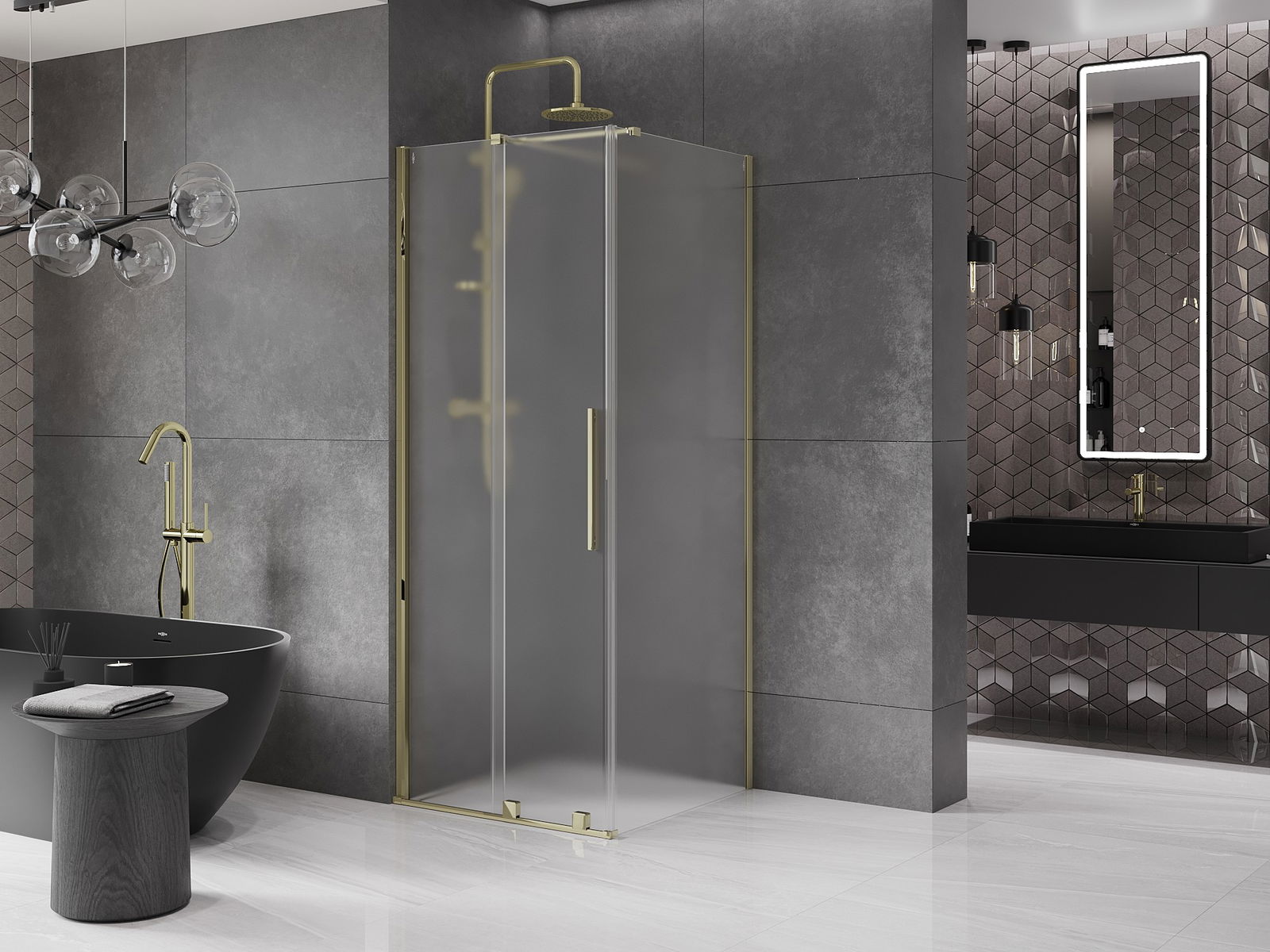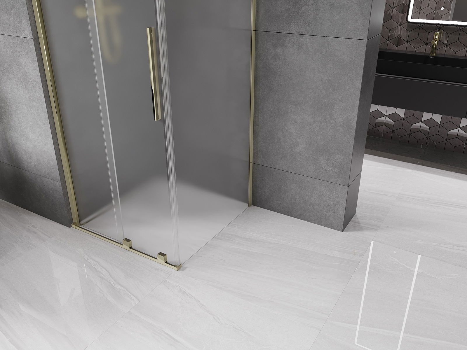 Mexen Velar bīdāms dušas kabīne 90 x 90 cm, matēts, zelta - 871-090-090-31-50