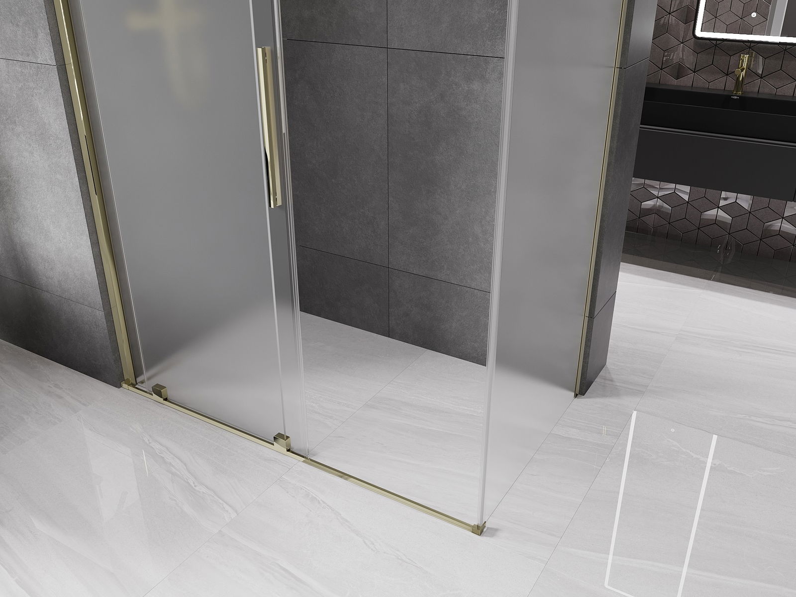 Mexen Velar bīdāms dušas kabīne 160 x 85 cm, matēts, zelta - 871-160-085-31-50