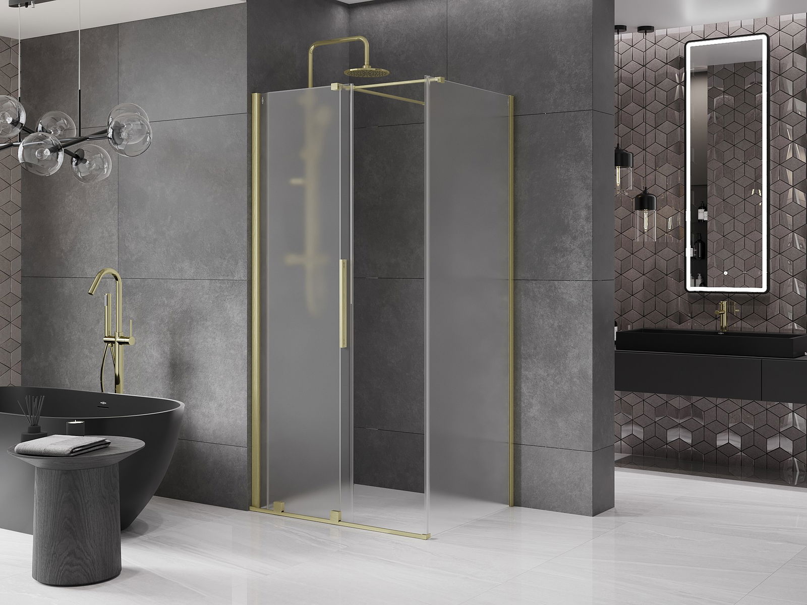 Mexen Velar bīdāma dušas kabīne 90 x 80 cm, sarma, zelta matēta - 871-090-080-31-55