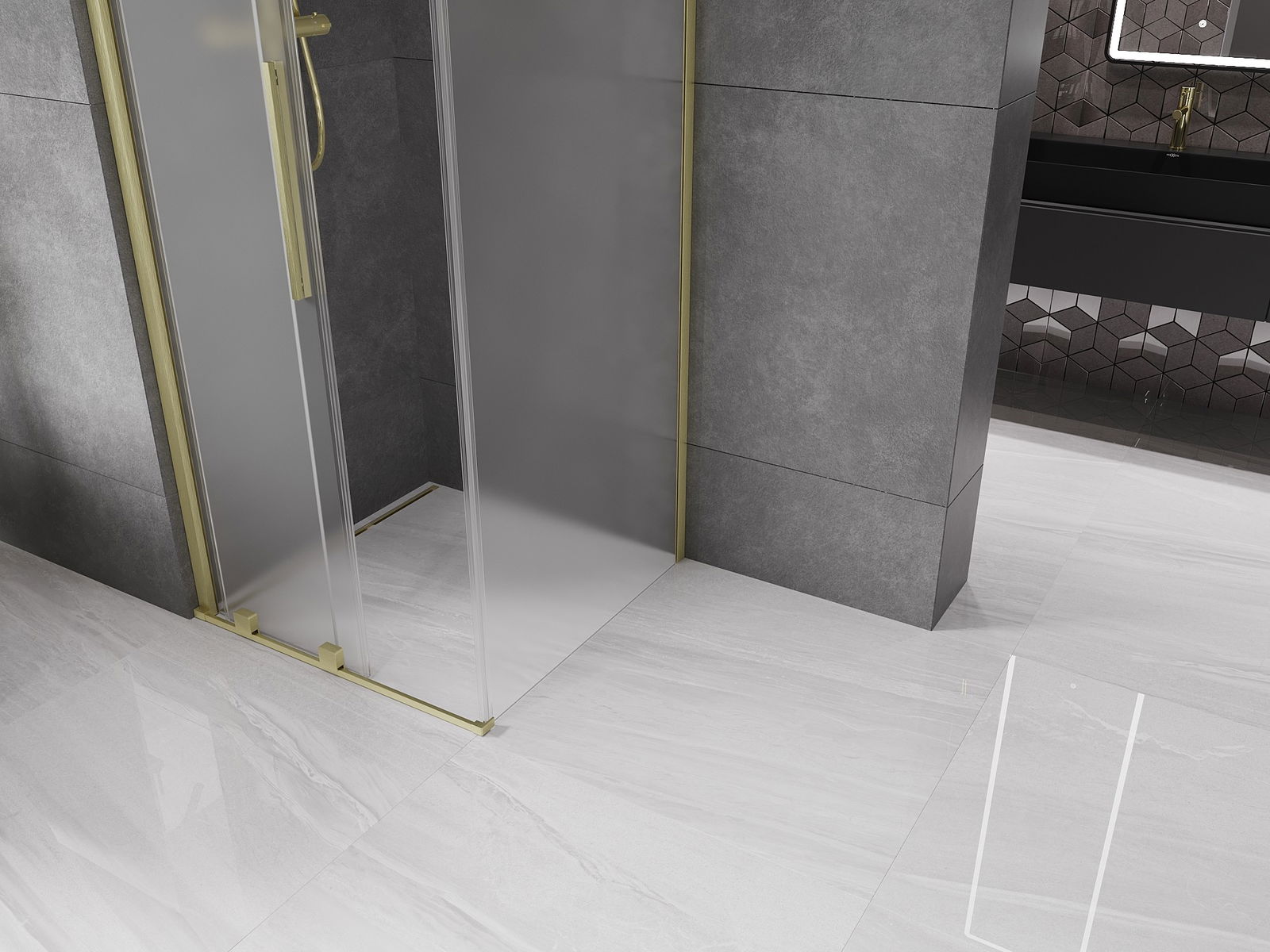 Mexen Velar bīdāmā dušas kabīne 110 x 110 cm, matēta, zelta matēta - 871-110-110-31-55