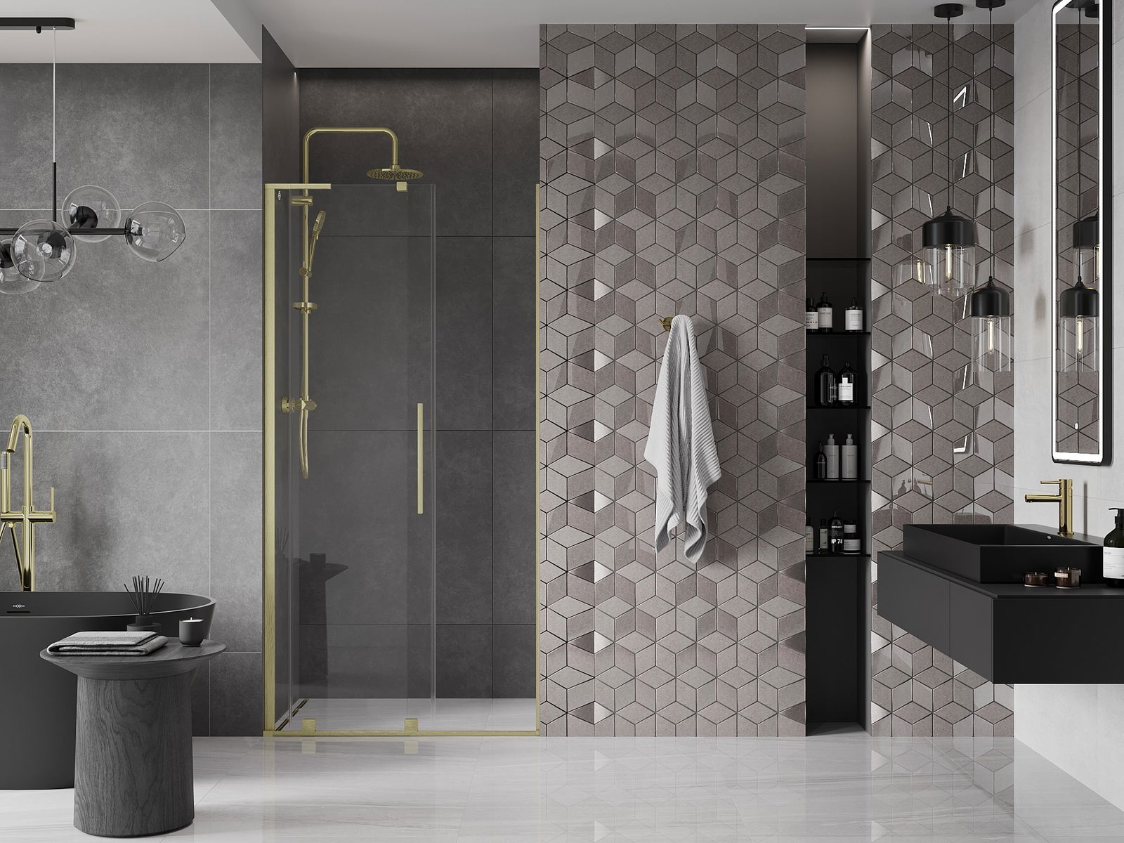 Mexen Velar L bīdāmās dušas durvis 100 cm, caurspīdīgas, zeltainas matētas - 871-100-003-01-55