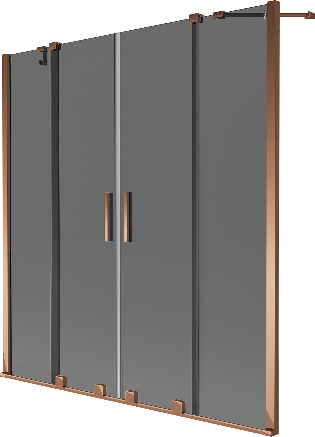 Mexen Velar Divpusējais vannas Parawan ar diviem bīdāmiem spārniem 140 x 150 cm, grafīts, rozā zelts - 896-140-000-42-60
