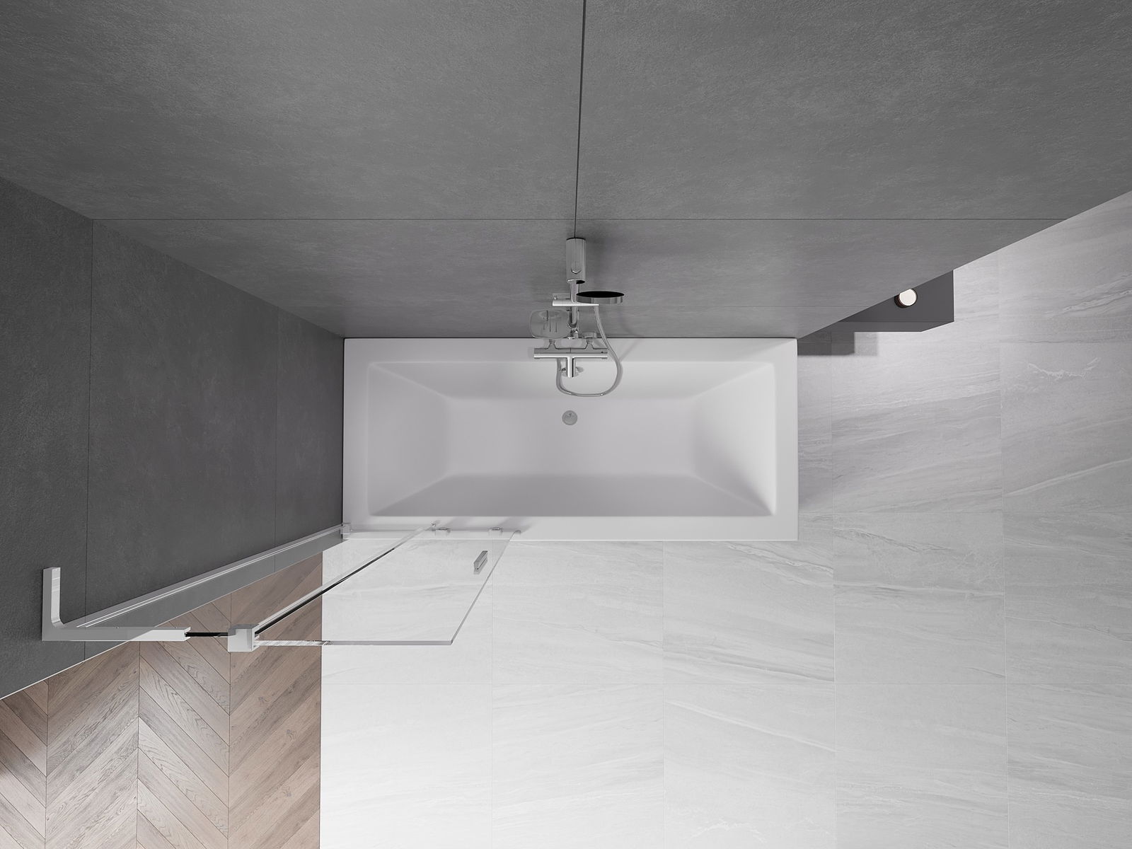 Efektīva aizsardzība pret ūdens izšļakstīšanos peldēšanās laikā. Ekrānam ir blīves, kas ideāli pielāgojas stikla virsmai un vannas malai. Funkcionāls risinājums, kas nodrošina drošību un vieglu tīrību.