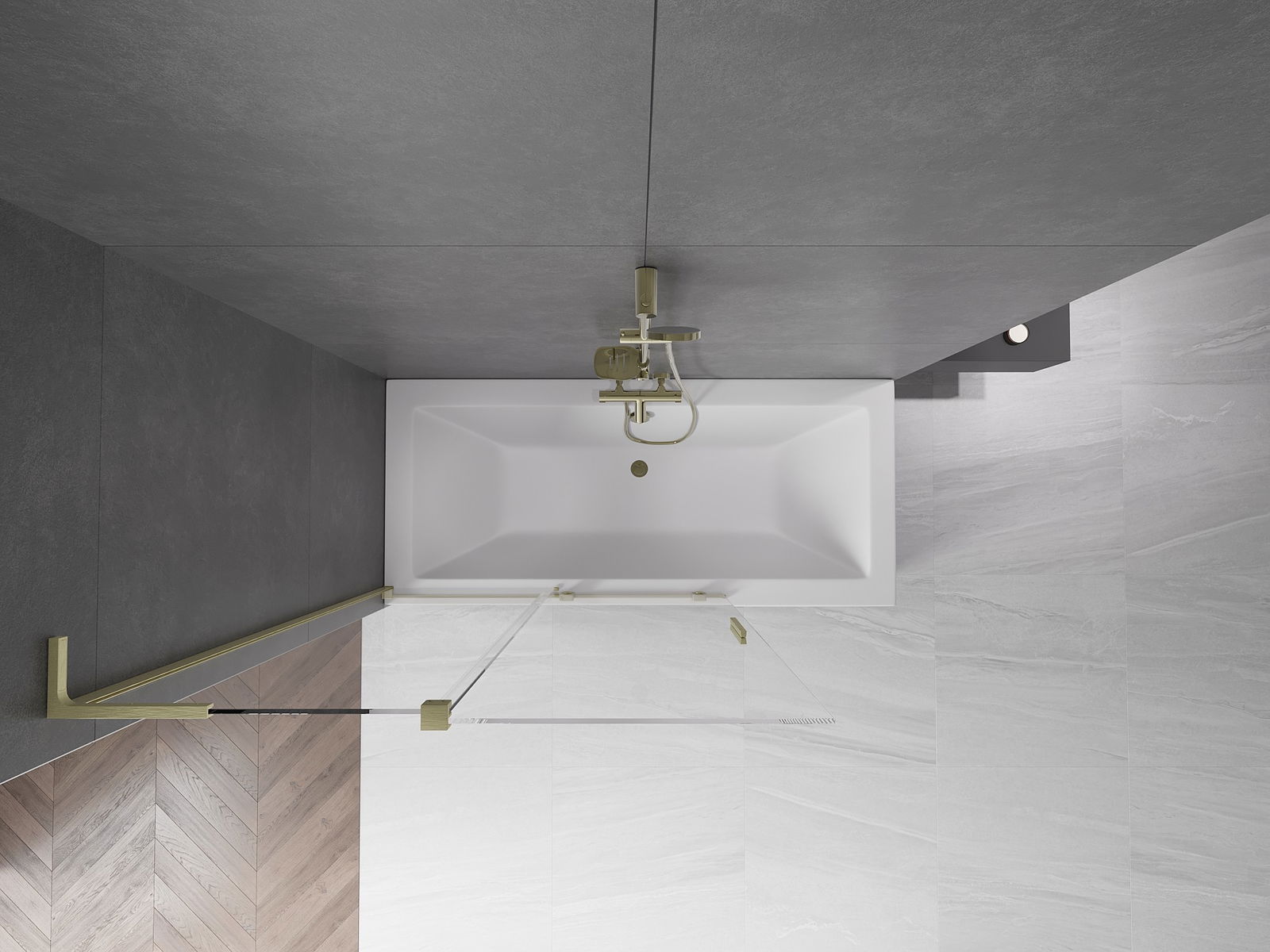 Mexen Velar L vannas istabas duša siena, 2-spārnu bīdāma, 120 x 150 cm, caurspīdīga, zelta matēta - 896-120-003-01-55