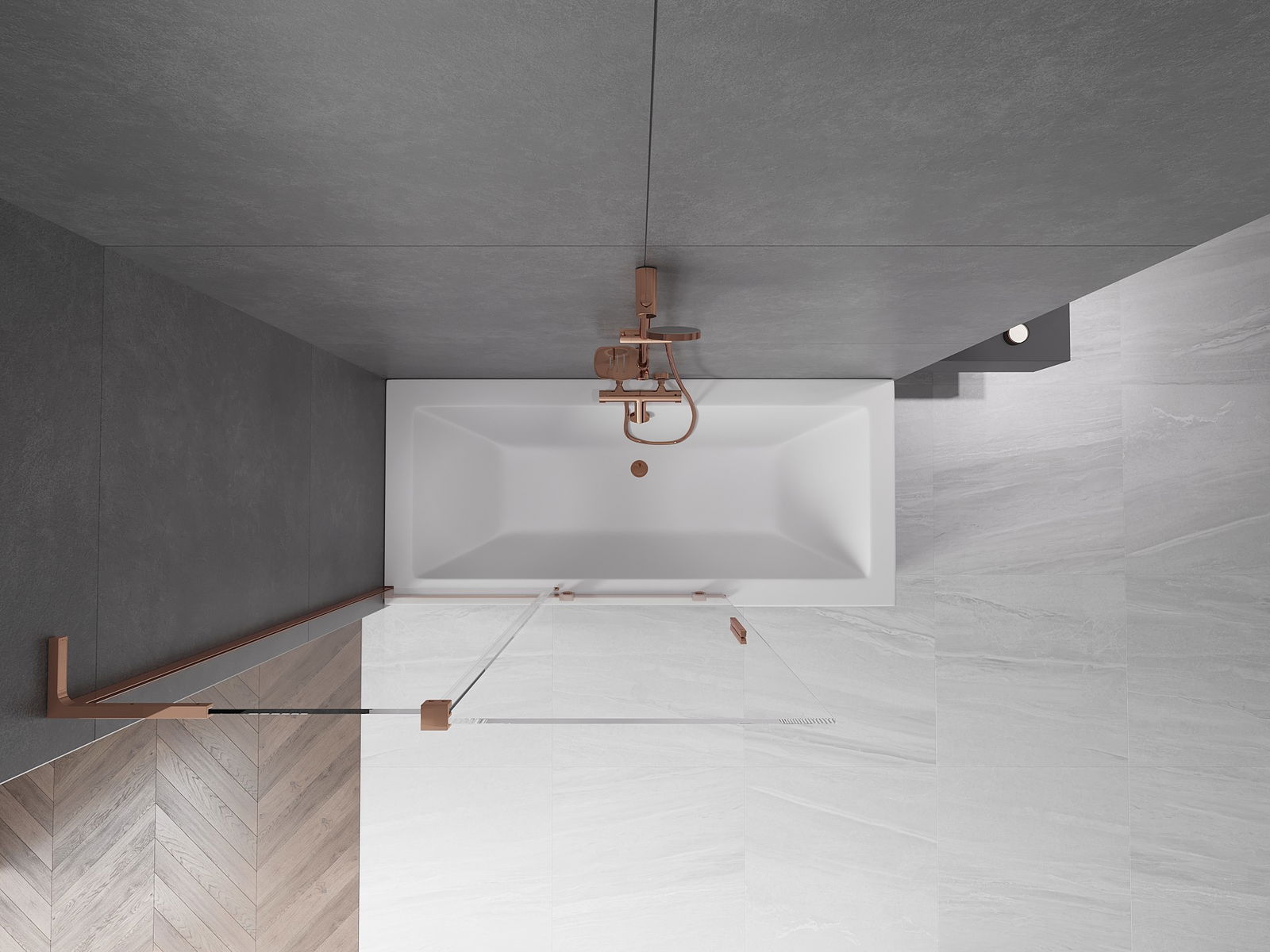 Mexen Velar L vannas istabas ekrāns, 2-daļīgais bīdāmais 120 x 150 cm, caurspīdīgs, rozā zelts - 896-120-003-01-60