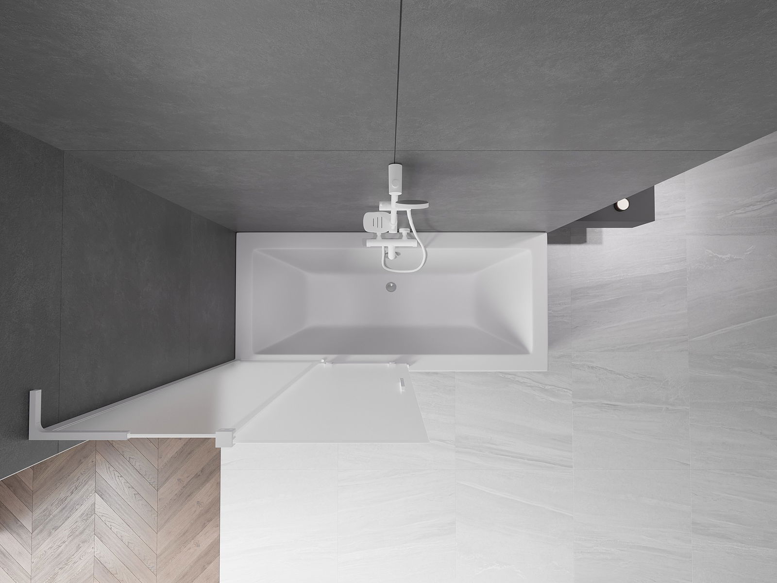 Efektīva aizsardzība pret ūdens izšļakstīšanos peldēšanās laikā. Ekrānam ir blīves, kas ideāli pielāgojas stikla virsmai un vannas malai. Funkcionāls risinājums, kas nodrošina drošību un vieglu tīrību.