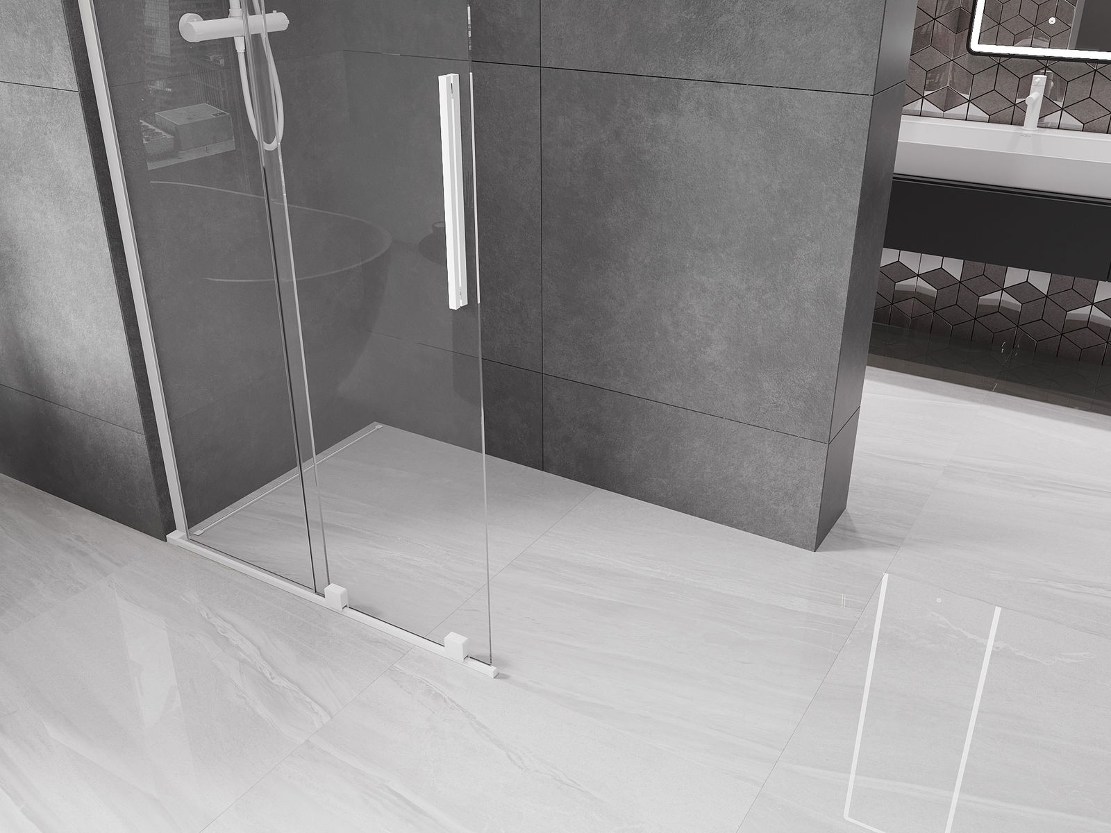 Mexen Velar L Bīdāma dušas siena Walk-in 90 x 200 cm, caurspīdīga 8 mm, balta - 871-090-003-03-20
