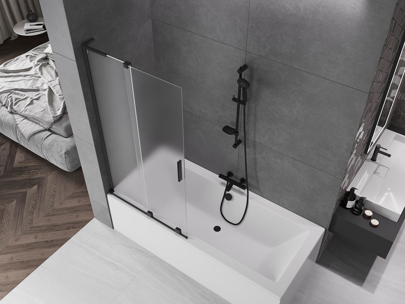 Mexen Velar L divkāršu bīdāms vannas ekrāns 90 x 150 cm, matēts, melns - 896-090-003-31-70