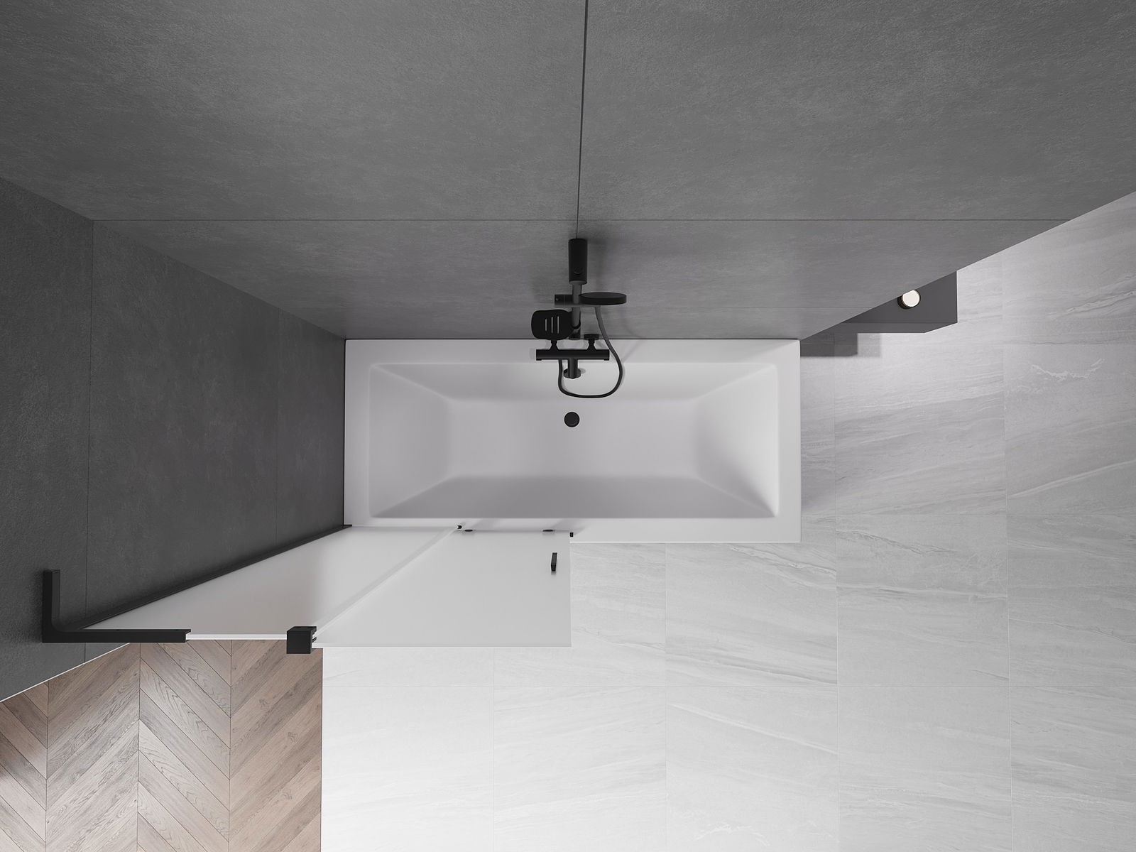 Efektīva aizsardzība pret ūdens izšļakstīšanos peldēšanās laikā. Ekrānam ir blīves, kas ideāli pielāgojas stikla virsmai un vannas malai. Funkcionāls risinājums, kas nodrošina drošību un vieglu tīrību.