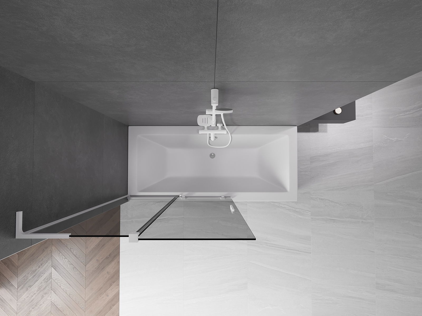 Efektīva aizsardzība pret ūdens izšļakstīšanos peldēšanās laikā. Ekrānam ir blīves, kas ideāli pielāgojas stikla virsmai un vannas malai. Funkcionāls risinājums, kas nodrošina drošību un vieglu tīrību.