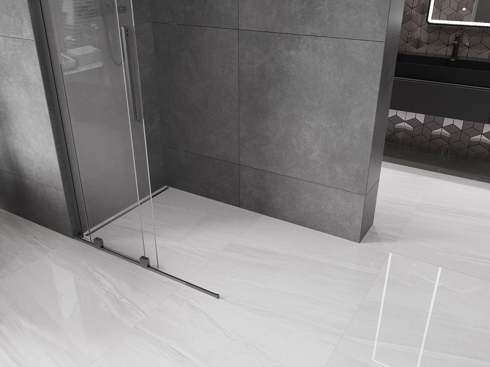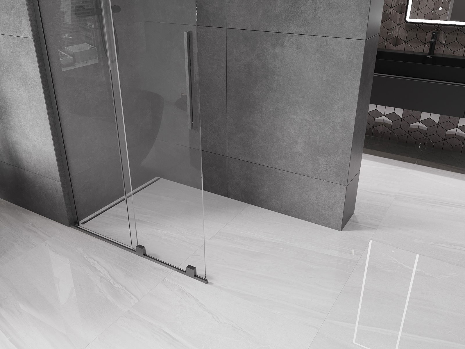 Mexen Velar L Bīdāmā stikla dušas siena Walk-in 90 x 200 cm, caurspīdīga 8 mm, gun gray matēta - 871-090-003-03-66