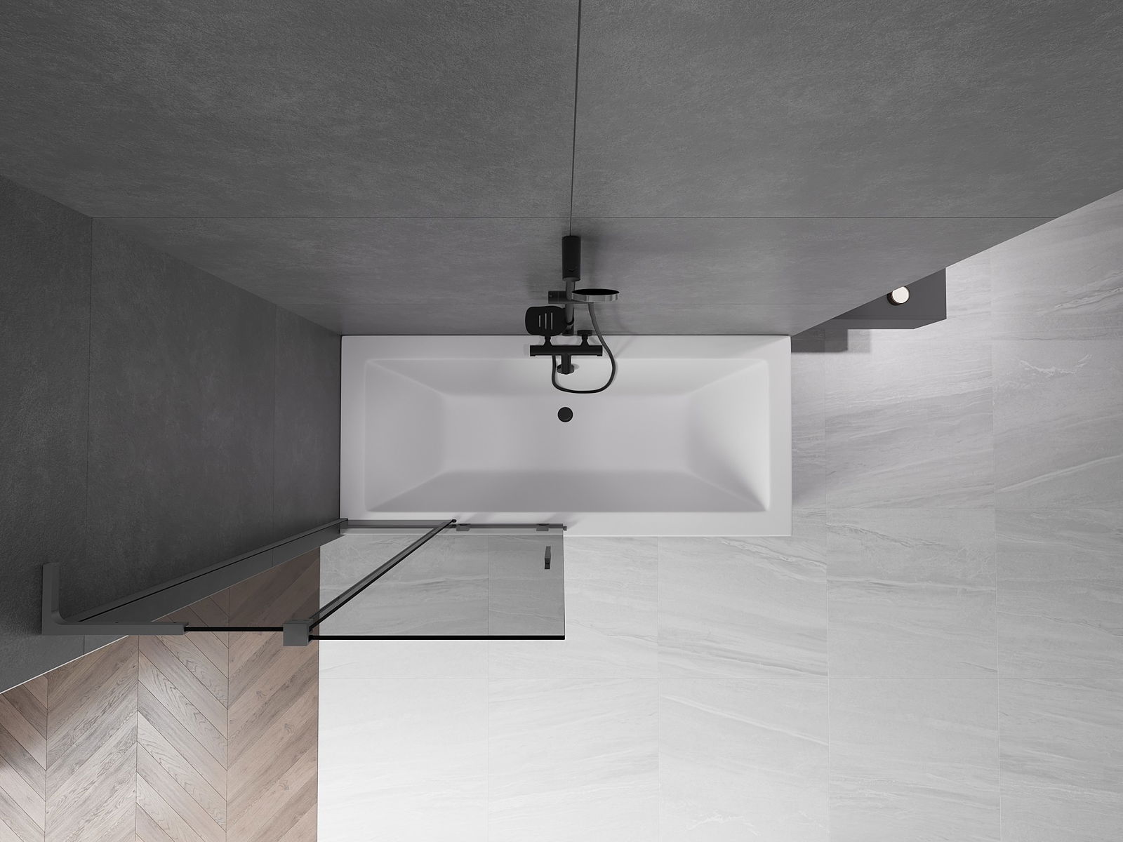 Efektīva aizsardzība pret ūdens izšļakstīšanos peldēšanās laikā. Ekrānam ir blīves, kas ideāli pielāgojas stikla virsmai un vannas malai. Funkcionāls risinājums, kas nodrošina drošību un vieglu tīrību.