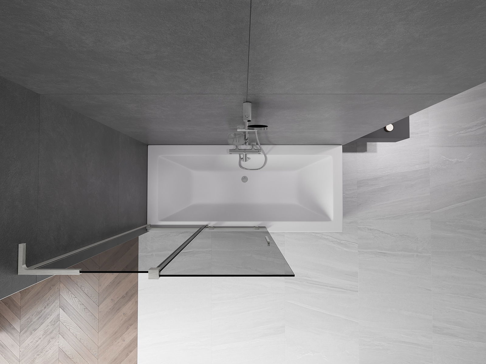 Efektīva aizsardzība pret ūdens izšļakstīšanos peldēšanās laikā. Ekrānam ir blīves, kas ideāli pielāgojas stikla virsmai un vannas malai. Funkcionāls risinājums, kas nodrošina drošību un vieglu tīrību.