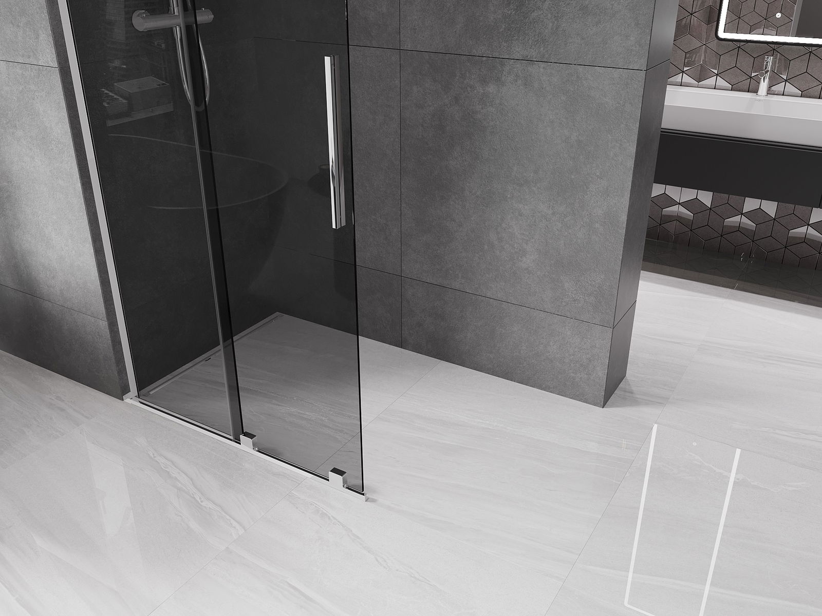 Mexen Velar L bīdāmā dušas siena Walk-in 90 x 200 cm, grafīts 8 mm, hroms - 871-090-003-43-01