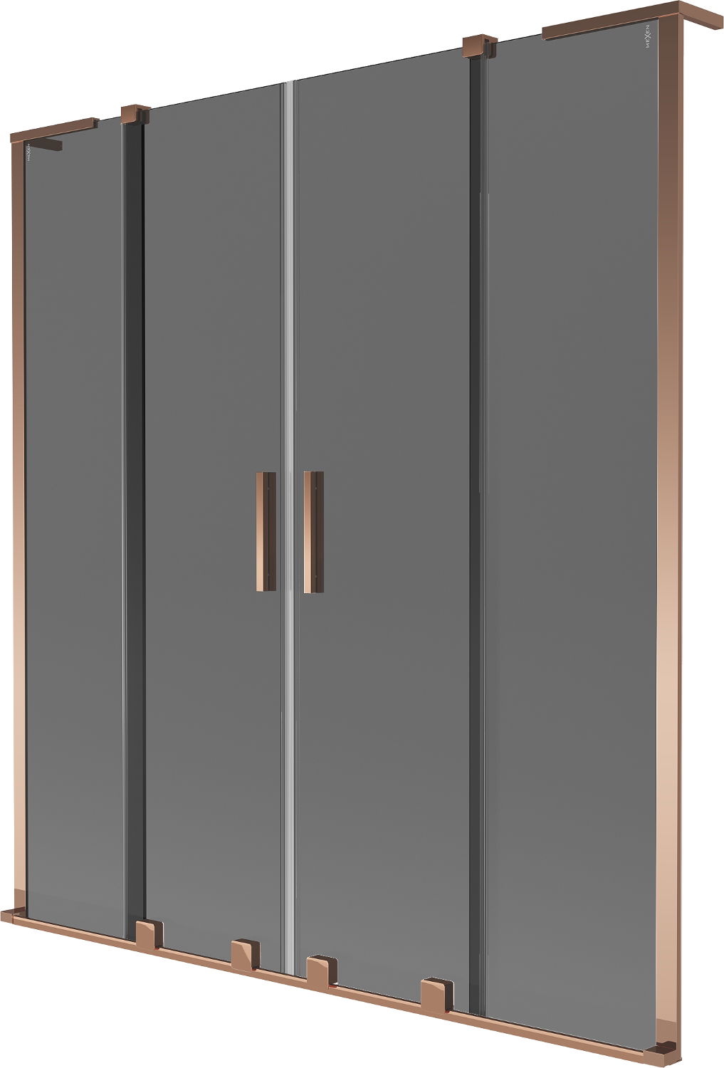 Mexen Velar L Duo vannas ekrāns ar 2 nodalījumiem, izvelkams 150 x 150 cm, grafīts, rožu zelts - 896-150-003-42-60
