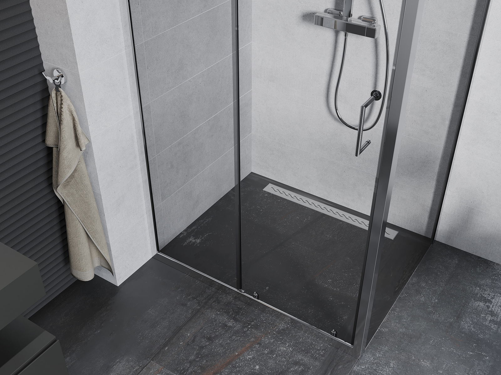 Produktu, atkarībā no vajadzībām, var uzstādīt gan uz dušas paliktņa, gan tieši uz grīdas. Universālā montāžas metode ļauj pielāgot produktu dažāda veida vannas istabām un telpas konfigurācijām.