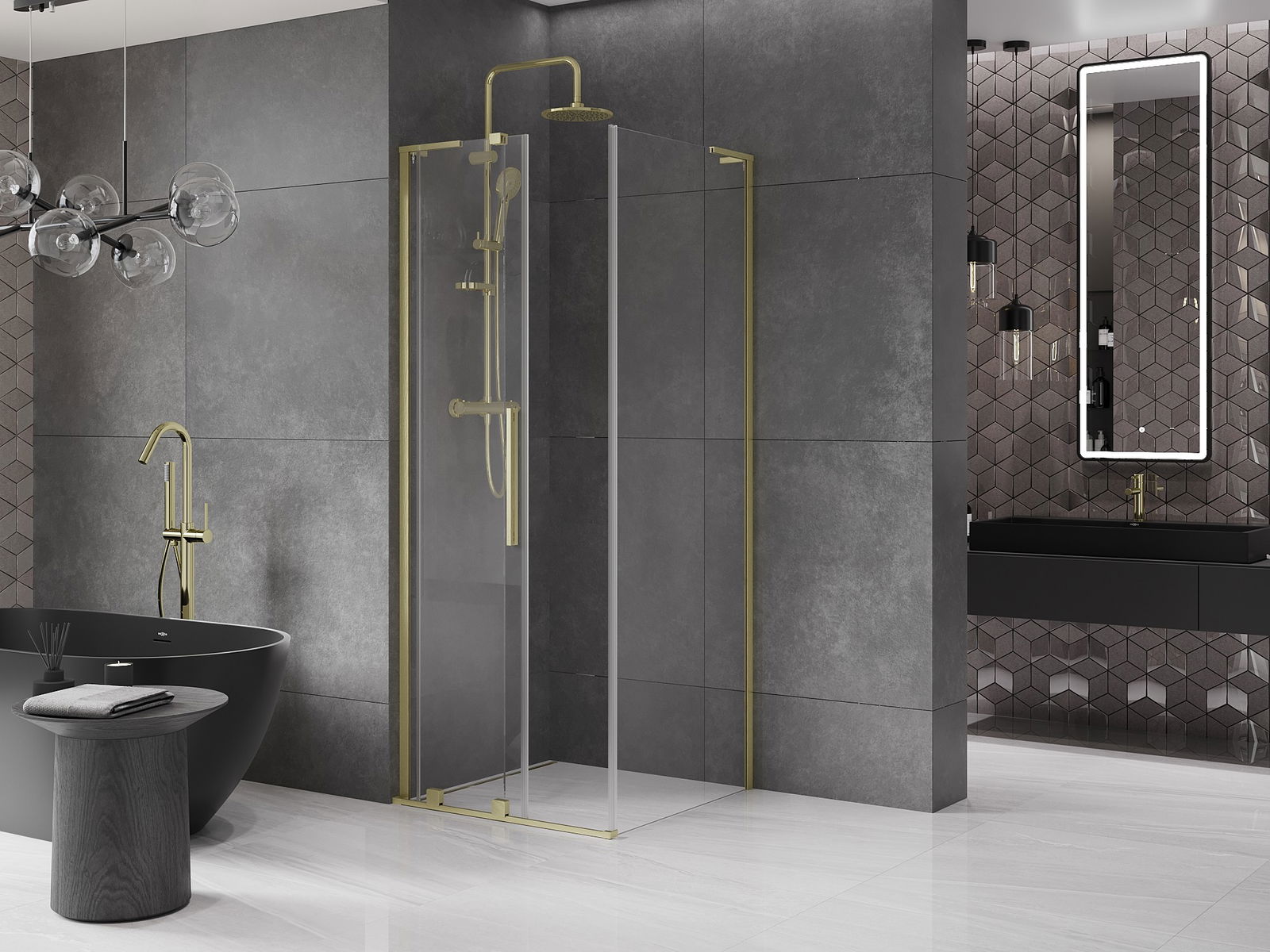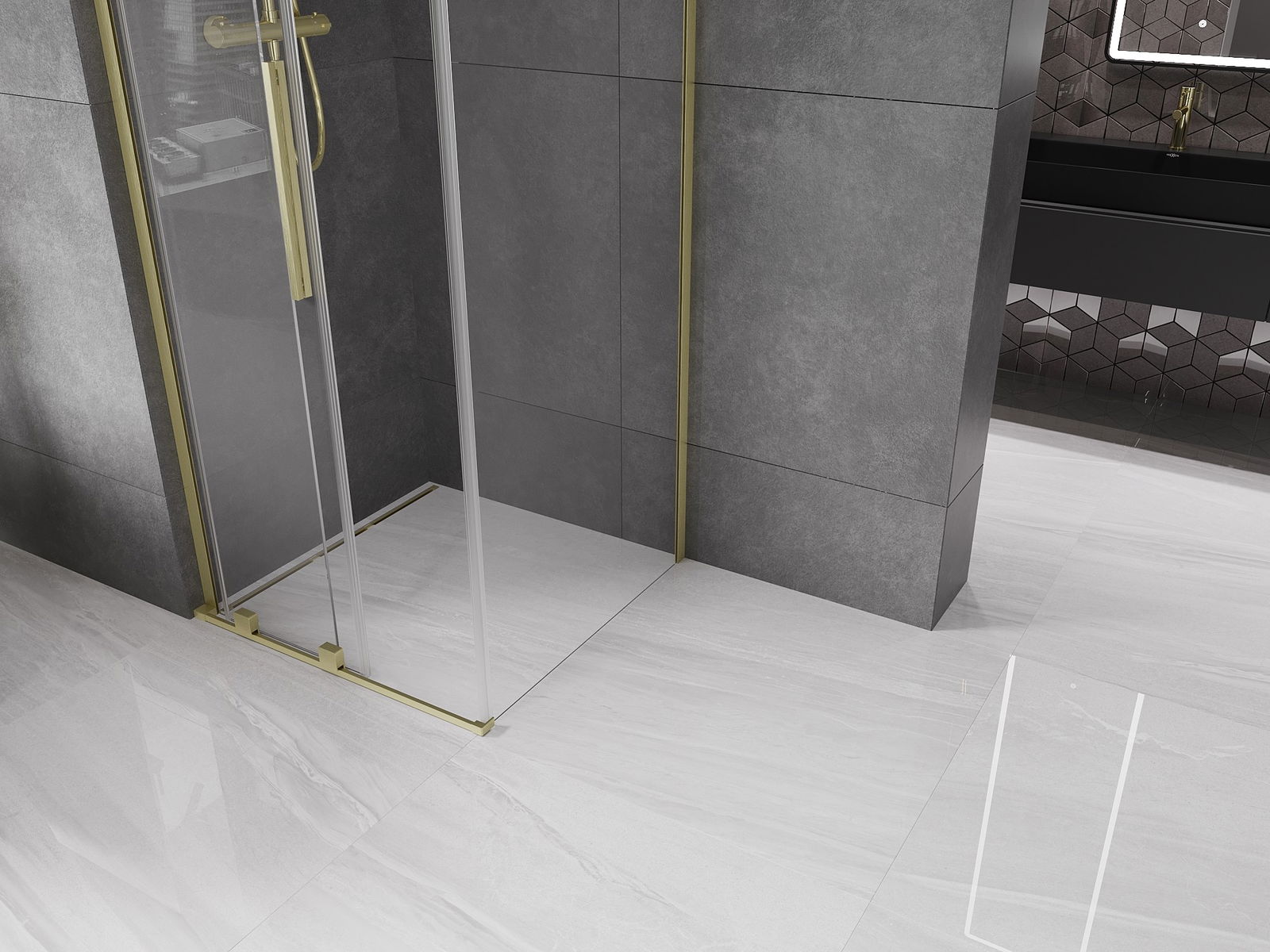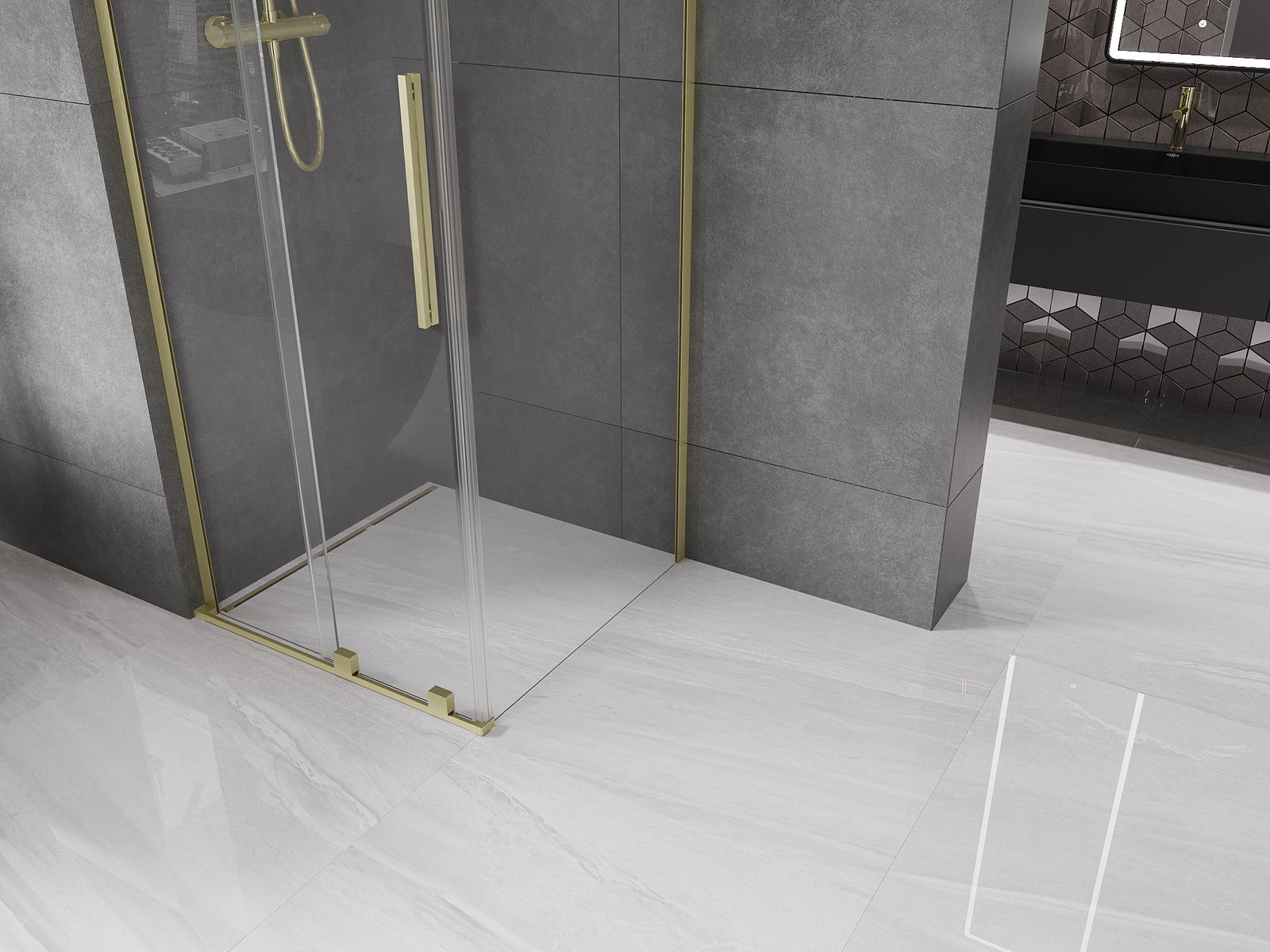 Mexen Velar L 90 x 90 cm bīdāmas dušas kabīne, caurspīdīga, zeltaini matēta - 871-090-090-03-55