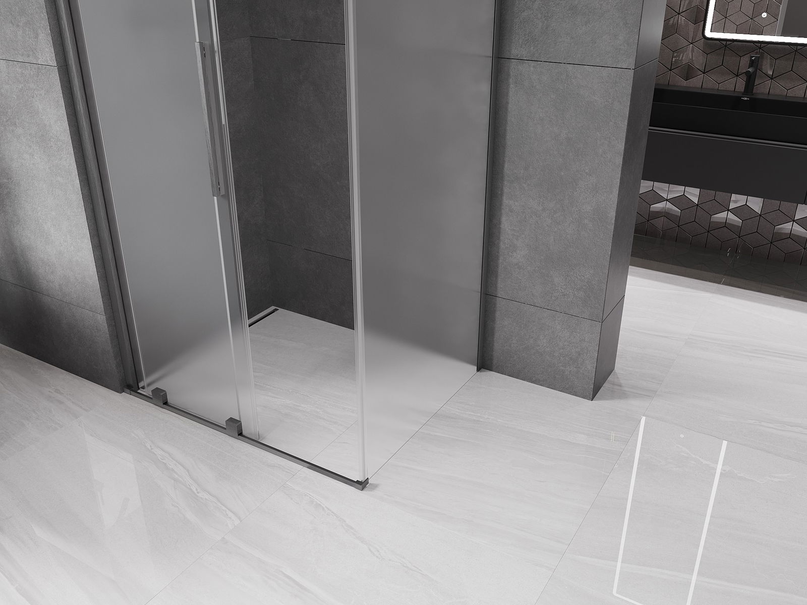 Mexen Velar bīdāms dušas kabīne 100 x 75 cm, matēta, matēts pelēks - 871-100-075-31-66
