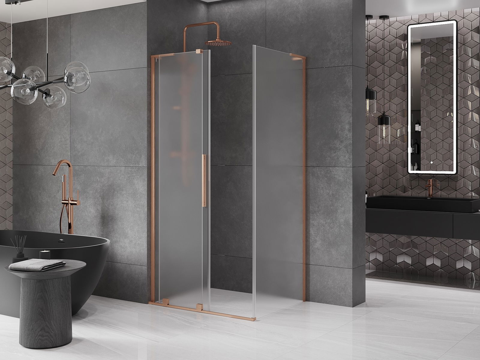 Mexen Velar L bīdāmā dušas kabīne 90 x 85 cm, matēta, matēts varš - 871-090-085-33-65