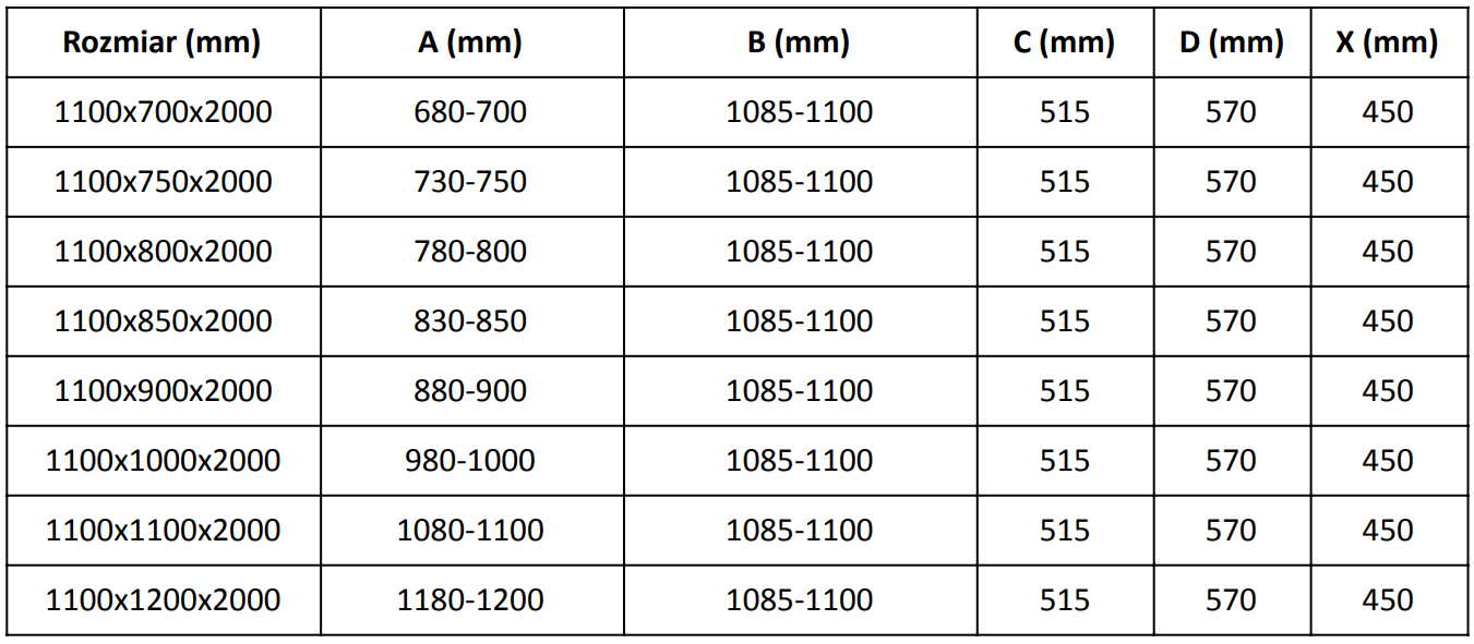 Izmērs: 110x100 cm (durvis 110 cm, siena 100 cm)