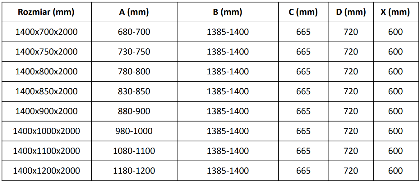 Izmērs: 140x80 cm (durvis 140 cm, siena 80 cm)