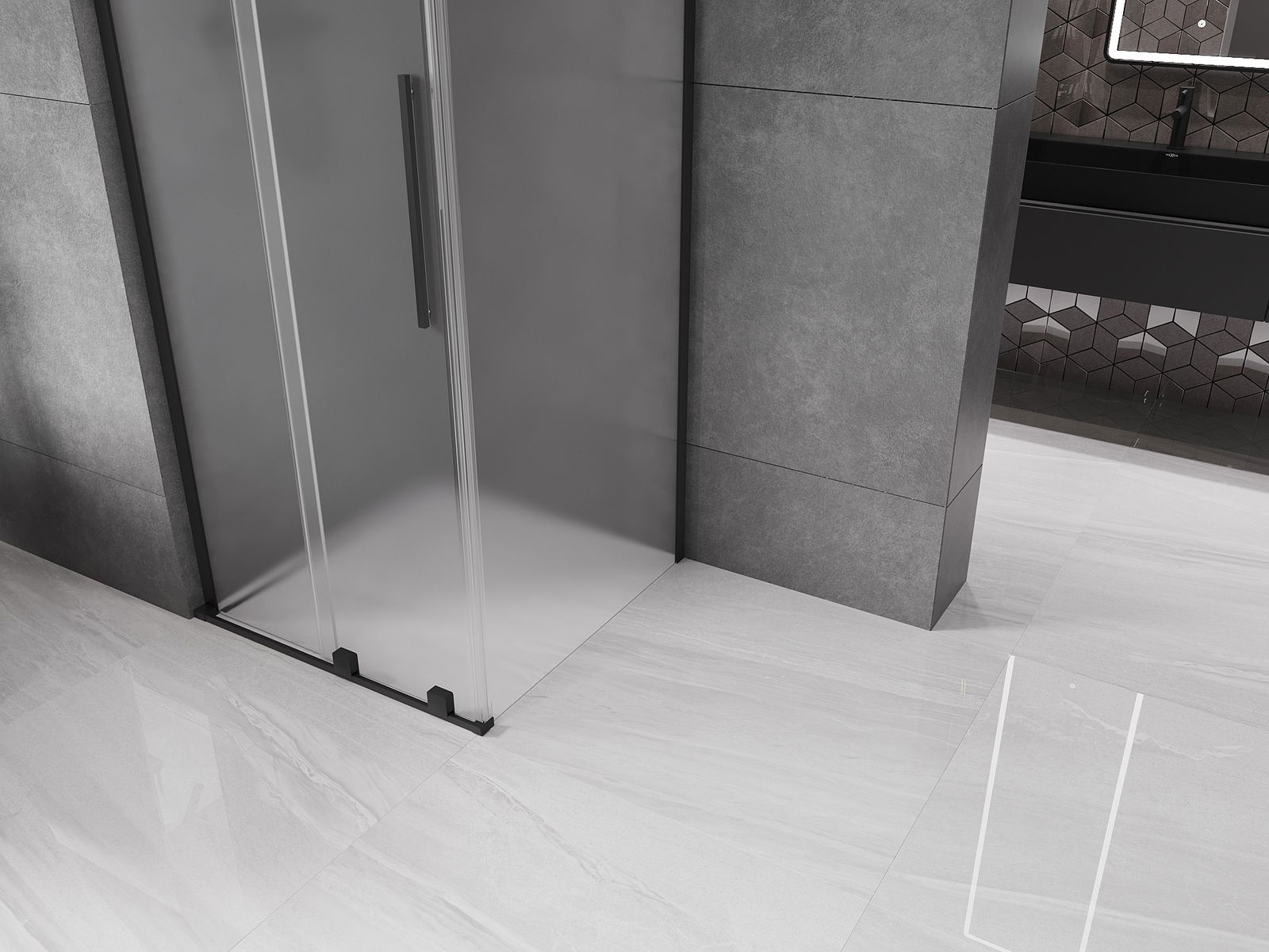 Mexen Velar L bīdāmā dušas kabīne 100 x 100 cm, matēts, melns - 871-100-100-33-70