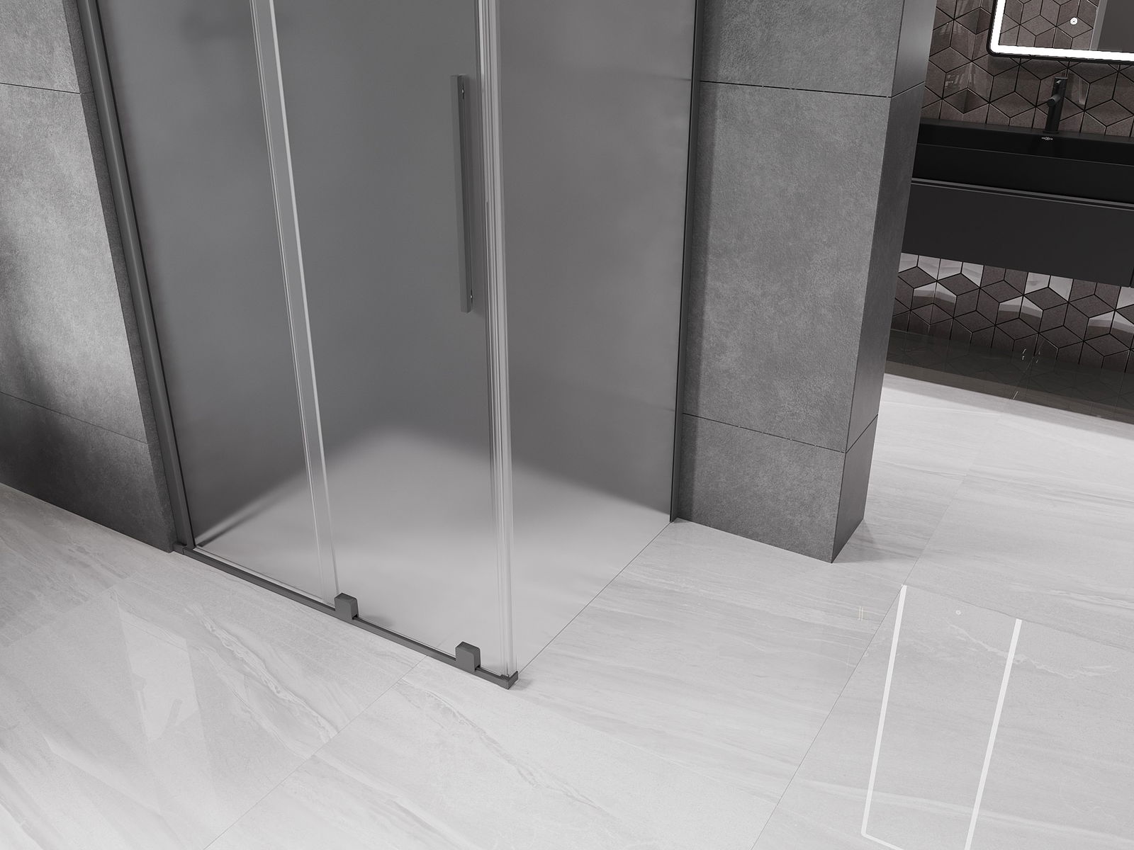 Mexen Velar bīdāmas dušas kabīne 130 x 85 cm, matēta, šautenes metāls - 871-130-085-31-95