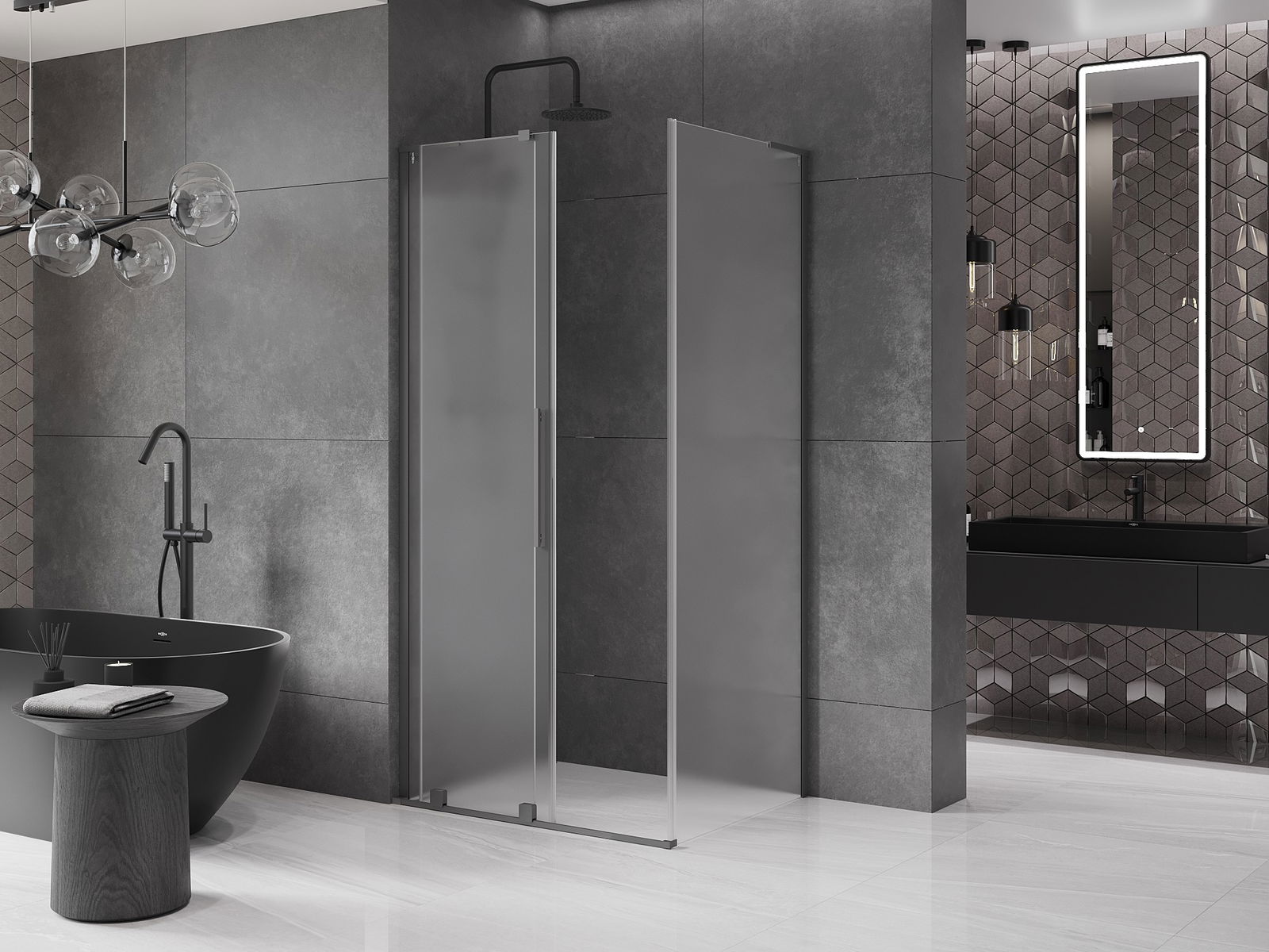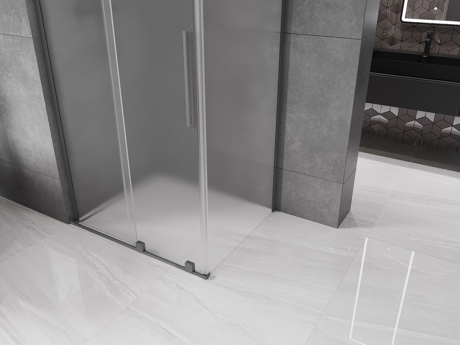 Mexen Velar L bīdāma dušas kabīne 110 x 120 cm, matēts stikls, tumšais metāls - 871-110-120-33-95