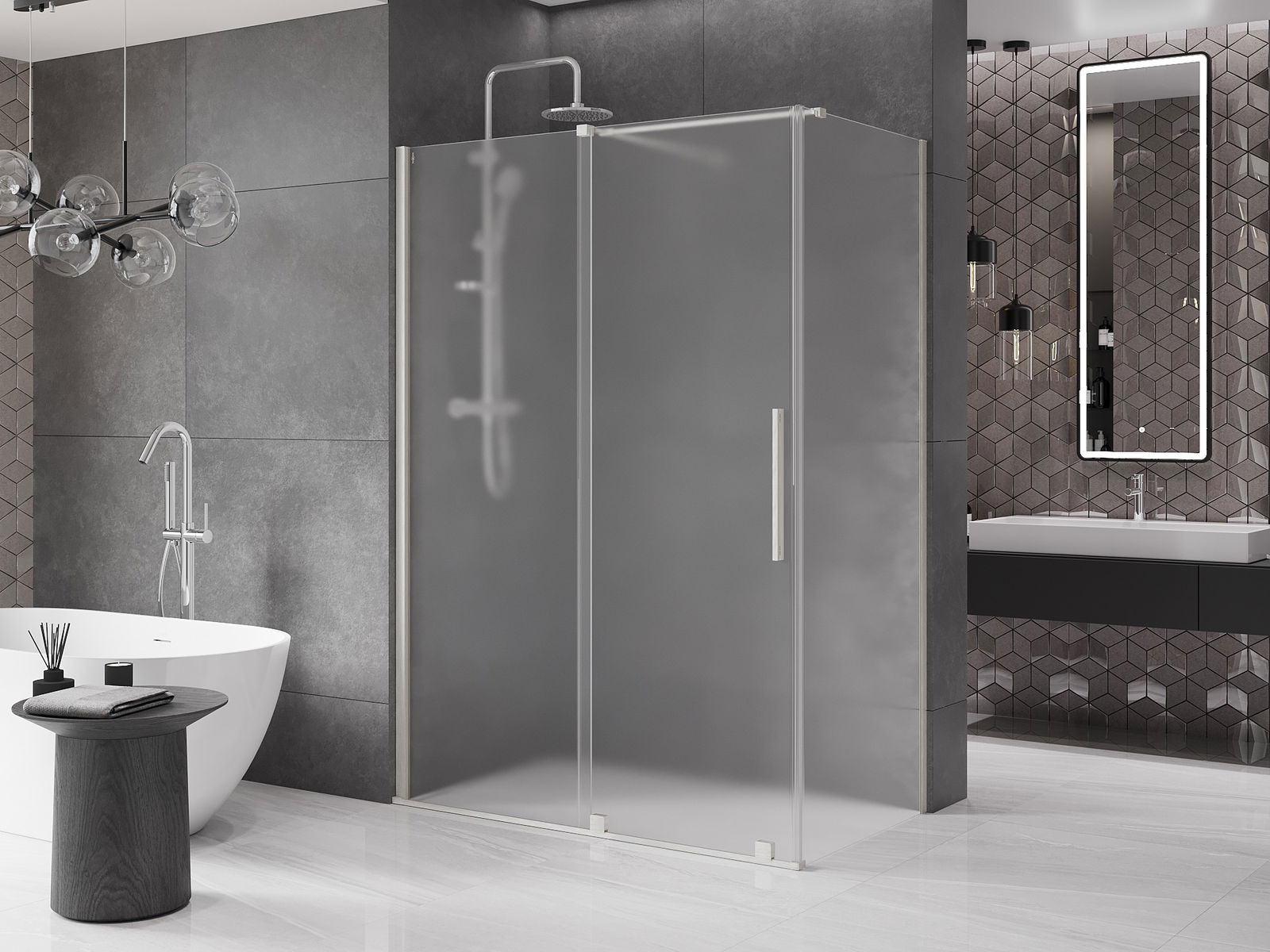 Ērts un parocīgs rokturis ir izgatavots no nerūsējoša tērauda. Modernā forma apvienojumā ar apdari, kas saskaņota ar profilu krāsu, piešķir kopējo modernu un stilīgu izskatu, izceļot katras vannas istabas estētiku.
