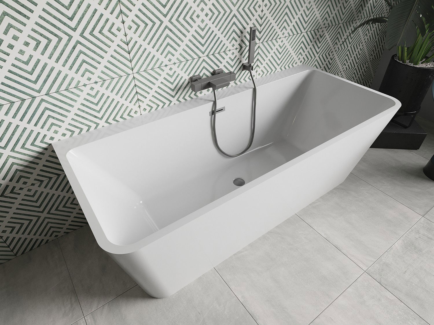 Mexen Volta brīvi stāvoša pie sienas vanna 150 x 75 cm, balta, pārplūde gun gray matēts - 51131507500-66
