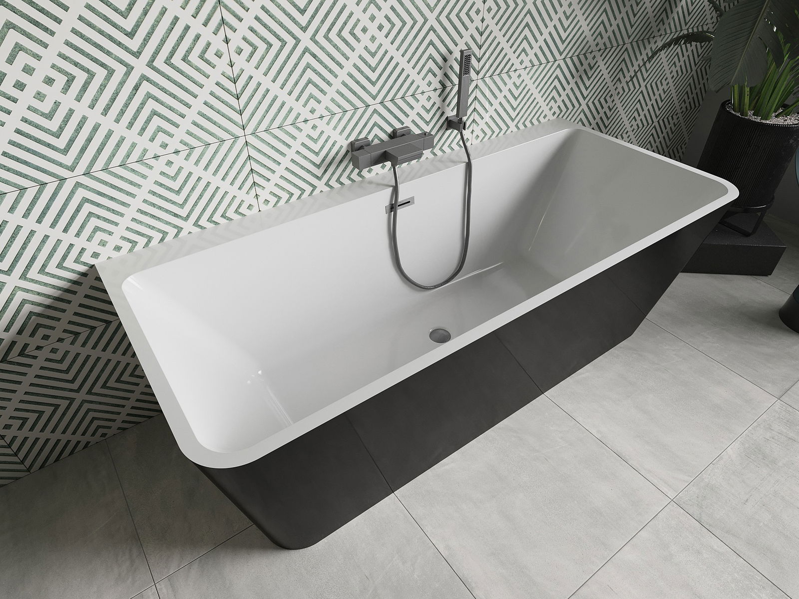 Mexen Volta brīvstāvošs pie sienas uzstādāms vanna 150 x 75 cm, balta/melna, pārpilde ar gun gray matētu apdari - 51131507575-66