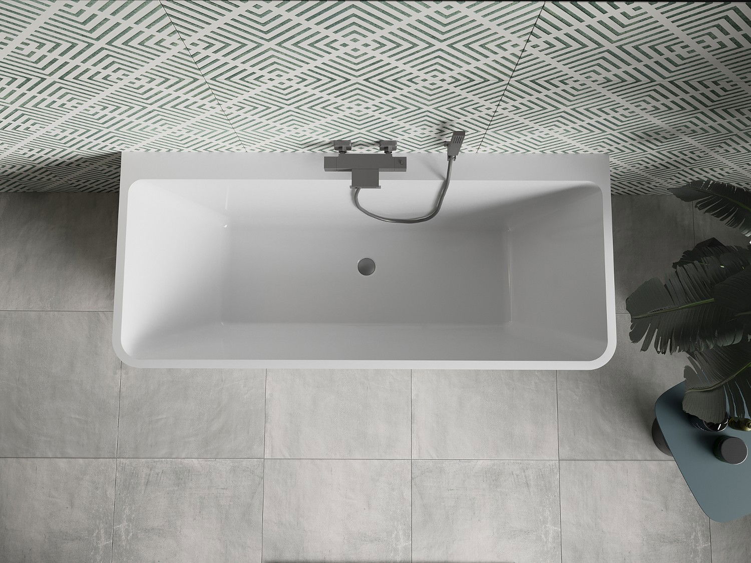 Mexen Volta brīvi stāvoša pie sienas piestiprināta vanna 170 x 75 cm, balta/melna, pārplūdes gun metal - 51131707575-95