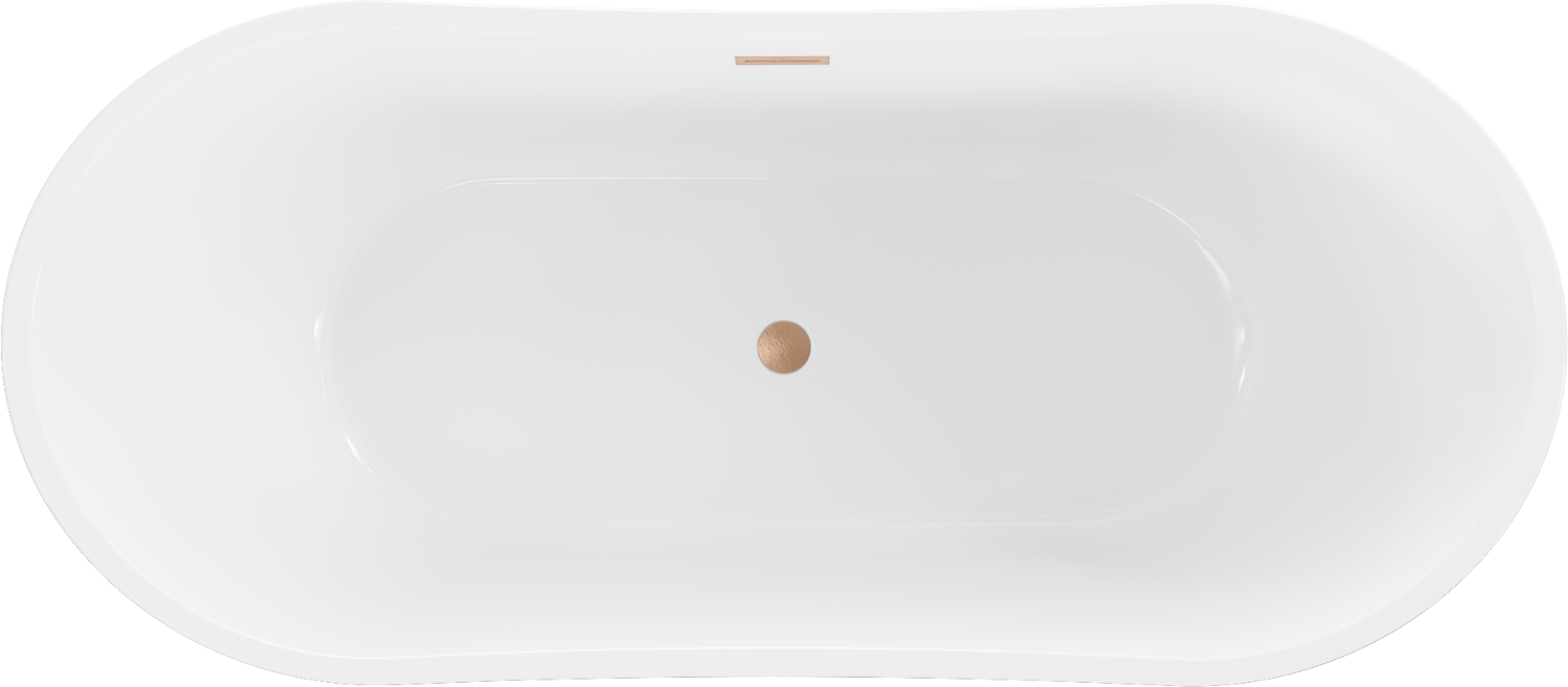 Brīvi stāvoša vanna ir ideāls risinājums jebkurai modernai vannas istabai. Tās izmēri 170 x 80 cm un augstums 72 cm nodrošina ērtu lietošanu. Izgatavota no sanitārā akrila, tā ir izturīga pret matēšanu un UV starojumu, kas garantē ilgstpējīgu spožumu. Ovāls formas un sniegbaltā krāsa lieliski iederas mūsdienu interjerā. Papildus, sukuota vara apdare izceļ tās eleganto izskatu. Komplektā ietilpst sifons un klak-klak korķis.