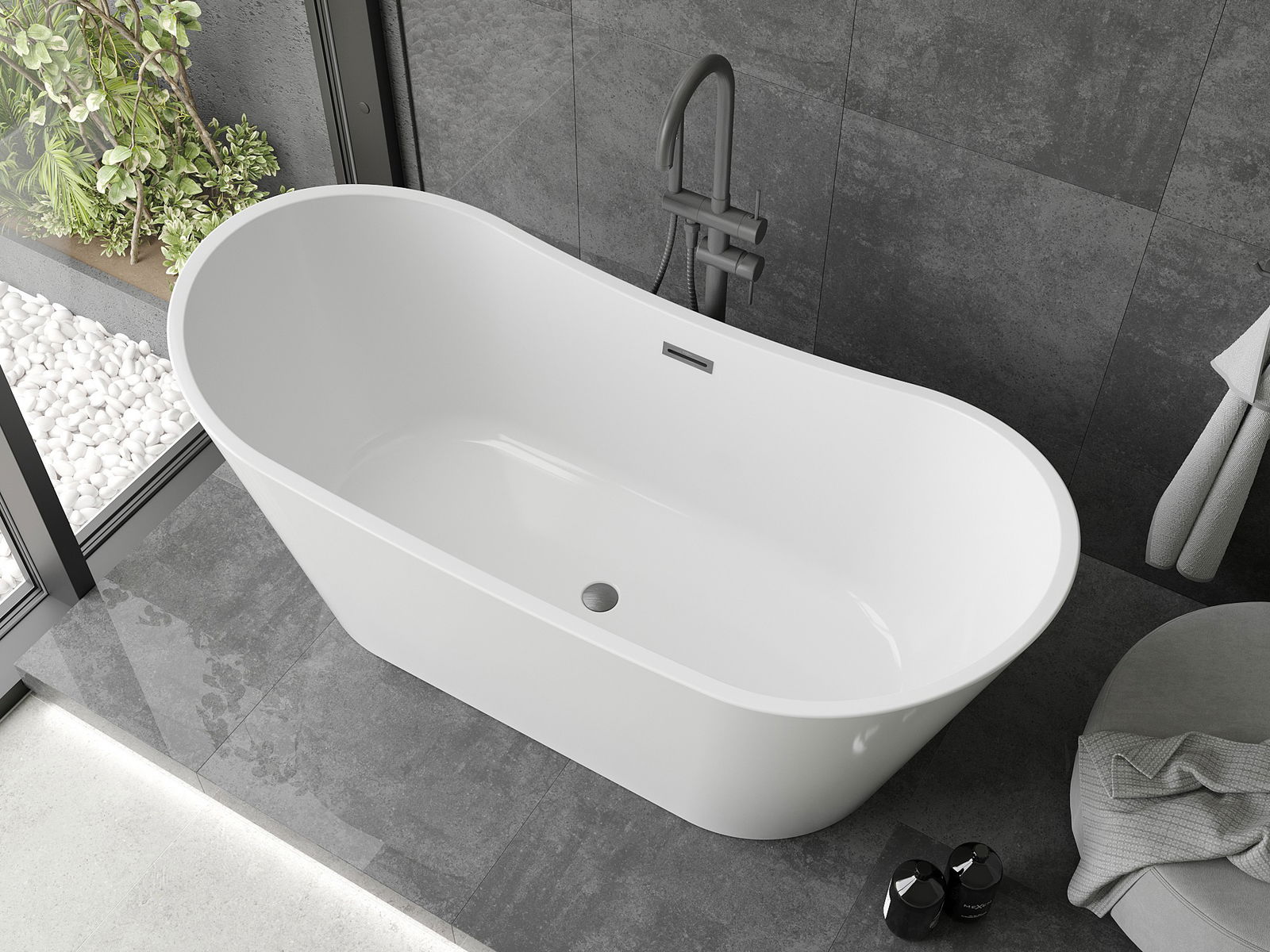 Mexen Montana brīvi stāvoša vanna 170 x 80 cm, balta, gun gray matēta apdare - 52011708000-66