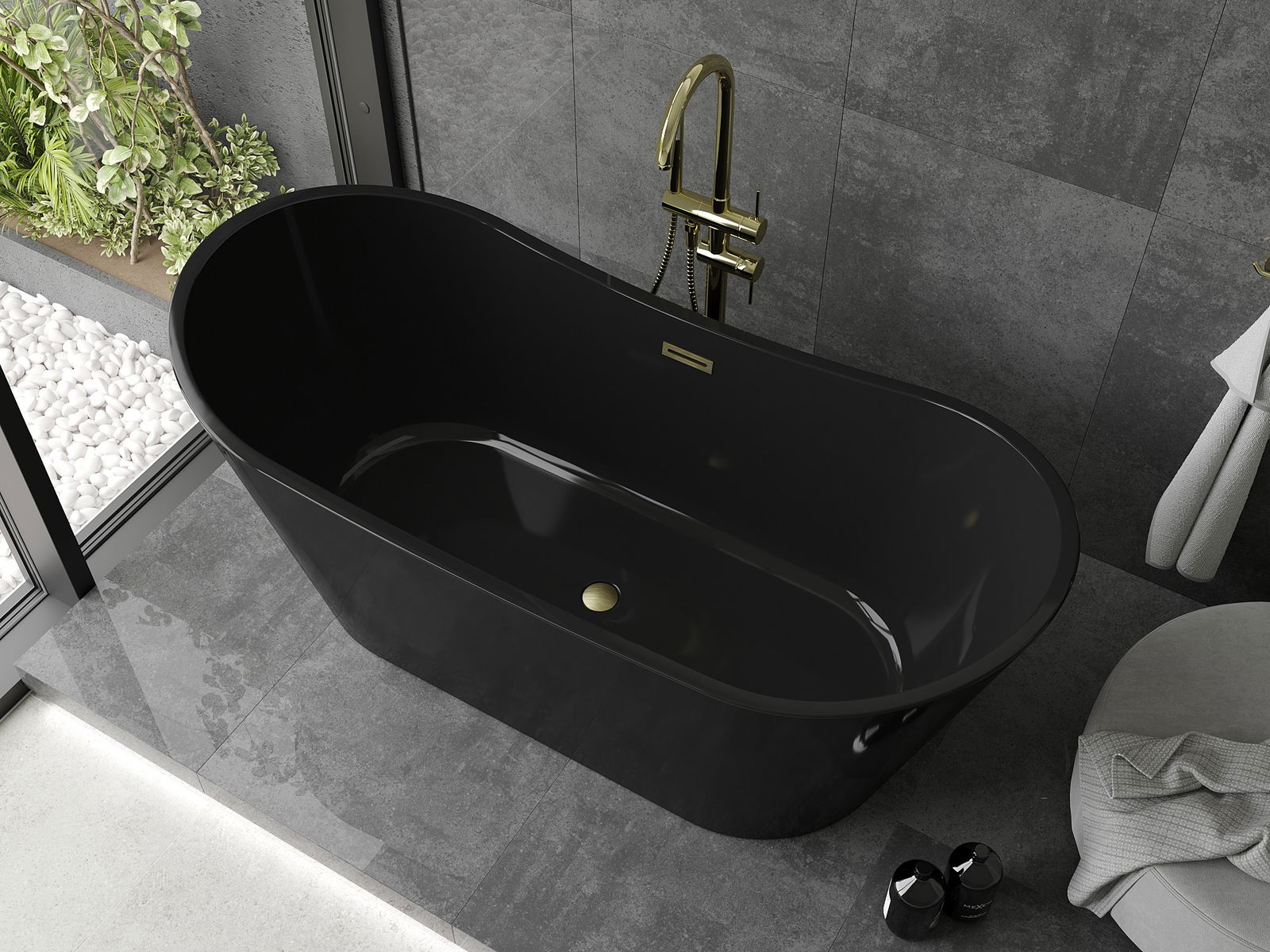 Mexen Montana Brīvi stāvoša vanna 170 x 80 cm, melna, pārplūde zelta matēta - 52011708070-55